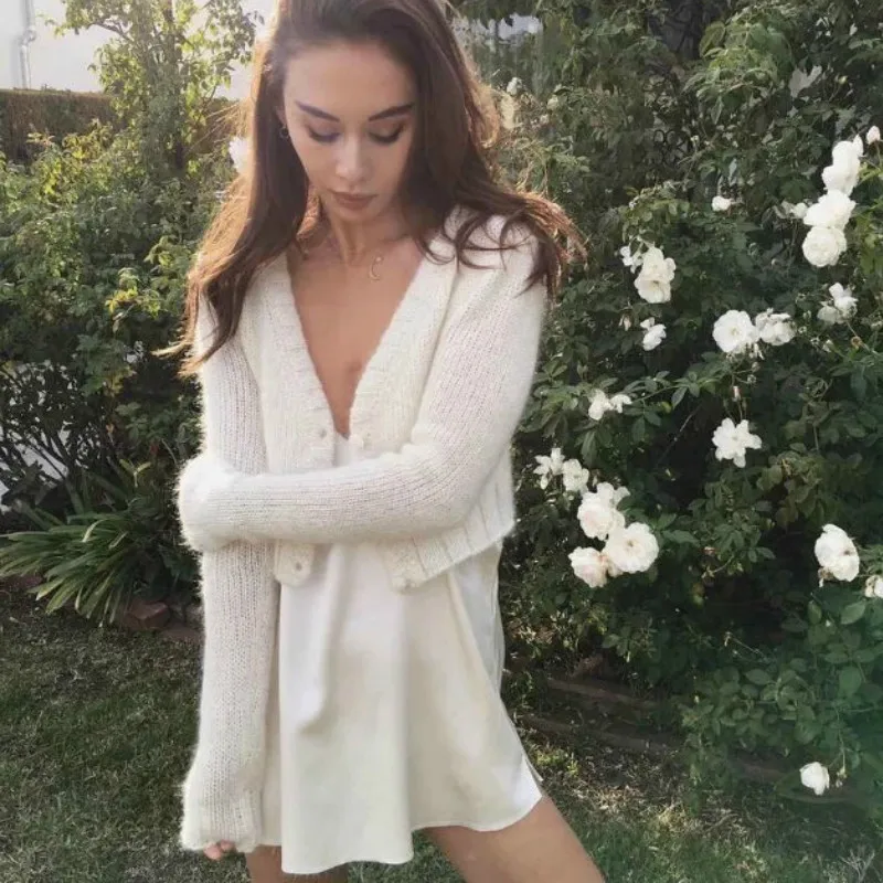 Женский плюшевый вязаный кардиган с V-образным вырезом, бархатный мохеровый свитер, пальто, норковая кашемировая куртка, однобортная офисная короткая трикотажная одежда, топы