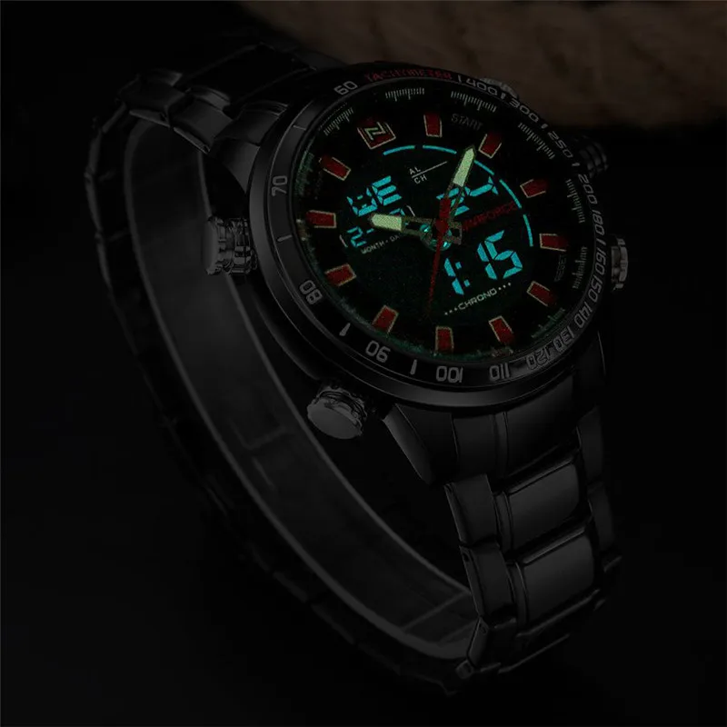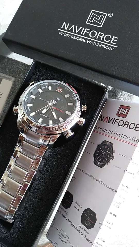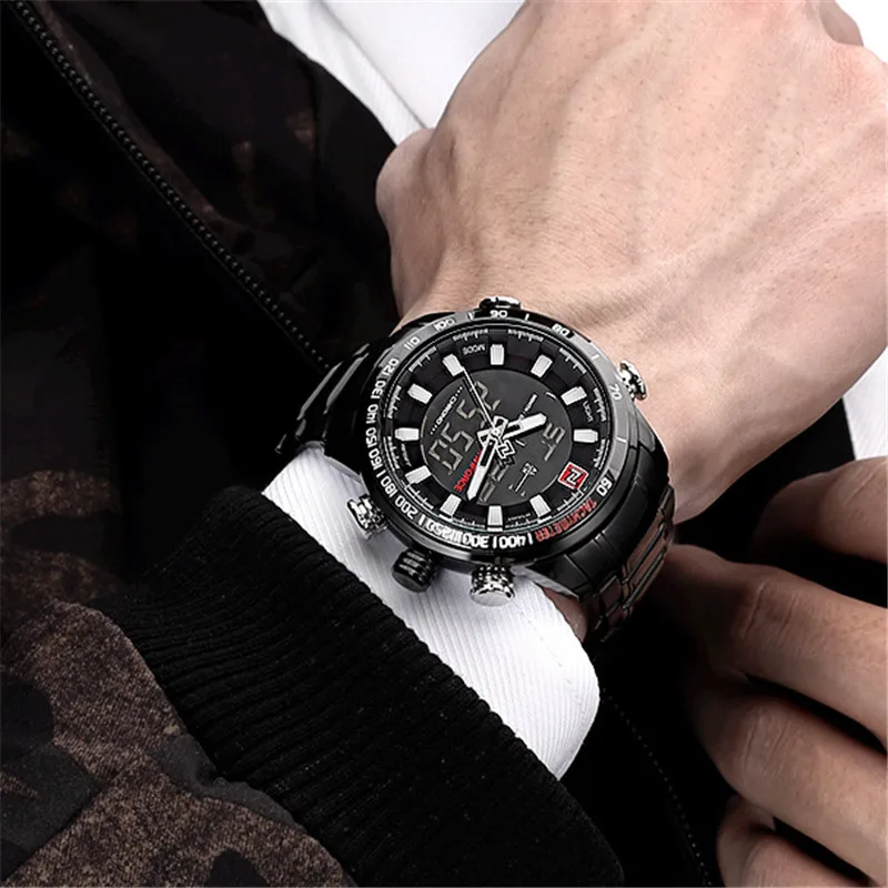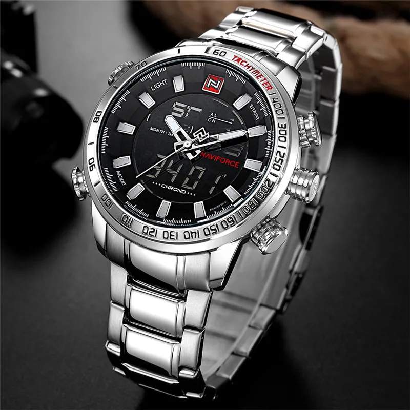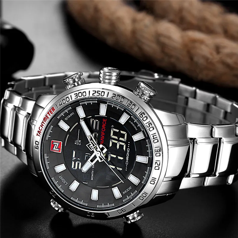 Часы NAVIFORCE мужские, военные, спортивные, светодиодные, аналоговые, цифровые, из нержавеющей стали, кварцевые, 9093