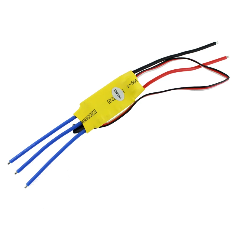 Спецификация: Вес: 25 г Размеры: 45x24x11 мм Мощность Входное напряжение: 5,6 V-16,8 V (2-3 клетки литий-полимерный, или 5-12 ячеек металл-гидридных или никель-металл-гидридный аккумулятор никель-кадмиевый аккумулятор) BEC: 2A Постоянный ток: 30A (макс. 40A менее 10 секунд) Характеристика: Безопасная функция питания: независимо от дроссельной заслонки в любом положении двигатель не начнет сразу же Функция калибровки дроссельной заслонки: адаптируется к различным дистанционным размерам перемещения дроссельной заслонки, улучшает линейность отклика дроссельной заслонки, с гладким, деликатным ощущением и отличной скоростью линейной скорости Режим защиты от низкого напряжения, порог защиты от низкого напряжения