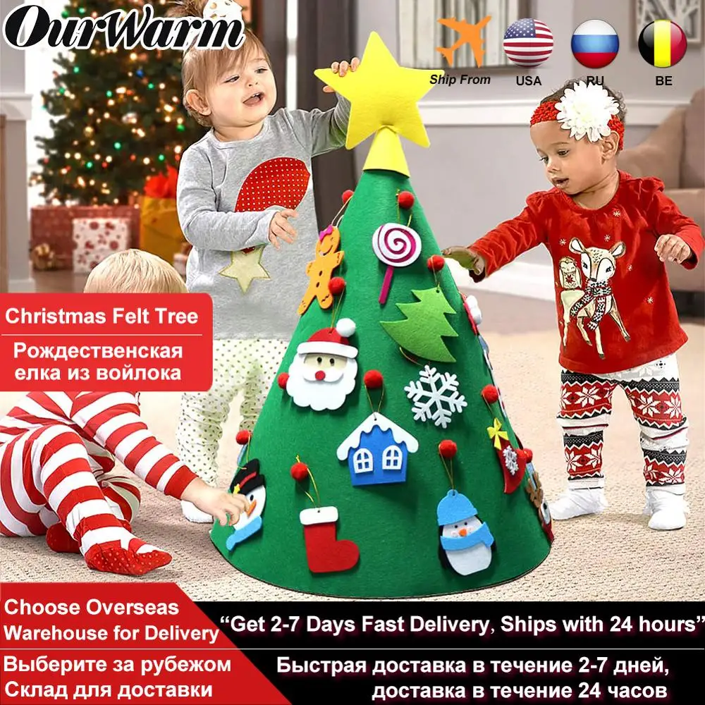 Фетровая Рождественская елка с подвесными украшениями OurWarm для детей, новогодние подарки, украшение для рождественской вечеринки