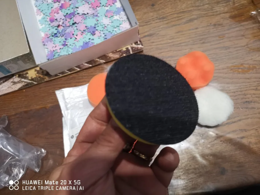 все пришло сами круги крепятся на липучке. есть в комплекте насадка под дрель и болгарку. в Украину дошло 2 недели.