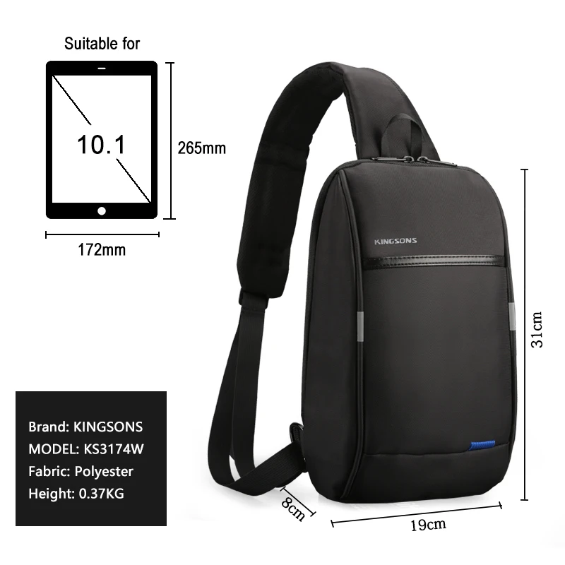 Скидка 10%, лидер продаж, нагрудный рюкзак Kingsons 10,1 дюйма для мужчин и женщин, Повседневная сумка через плечо, удобный дорожный рюкзак на одно плечо