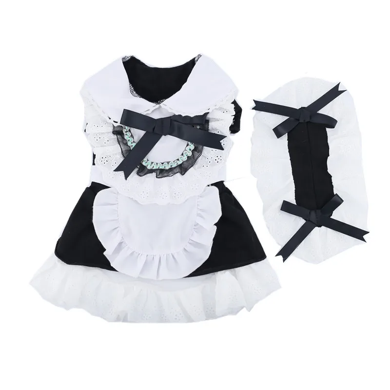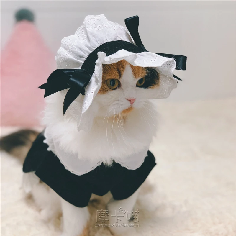 Милая одежда для домашних животных, одежда для кошек, Униформа горничной для кошек, японское платье из полиэстера и хлопка