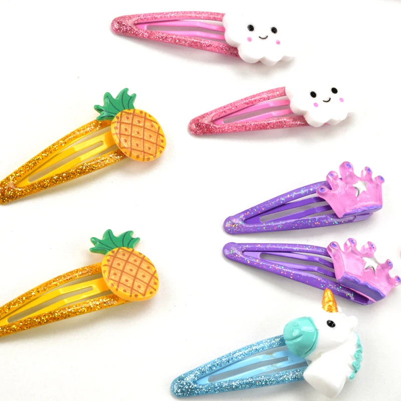 2 шт./лот, новые детские аксессуары для волос, заколки для волос с клубничным ананасом и фруктами, 5 см, заколки для волос с мультяшным единорогом, лошадью, короной для девочек
