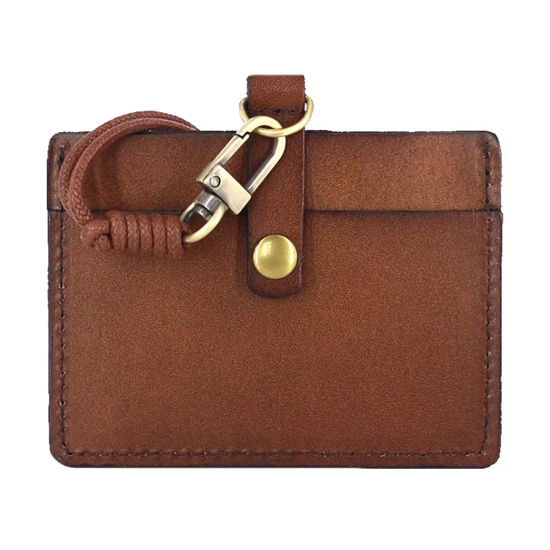 Чехол для бейджа из натуральной кожи, с ремешком, в стиле ретро