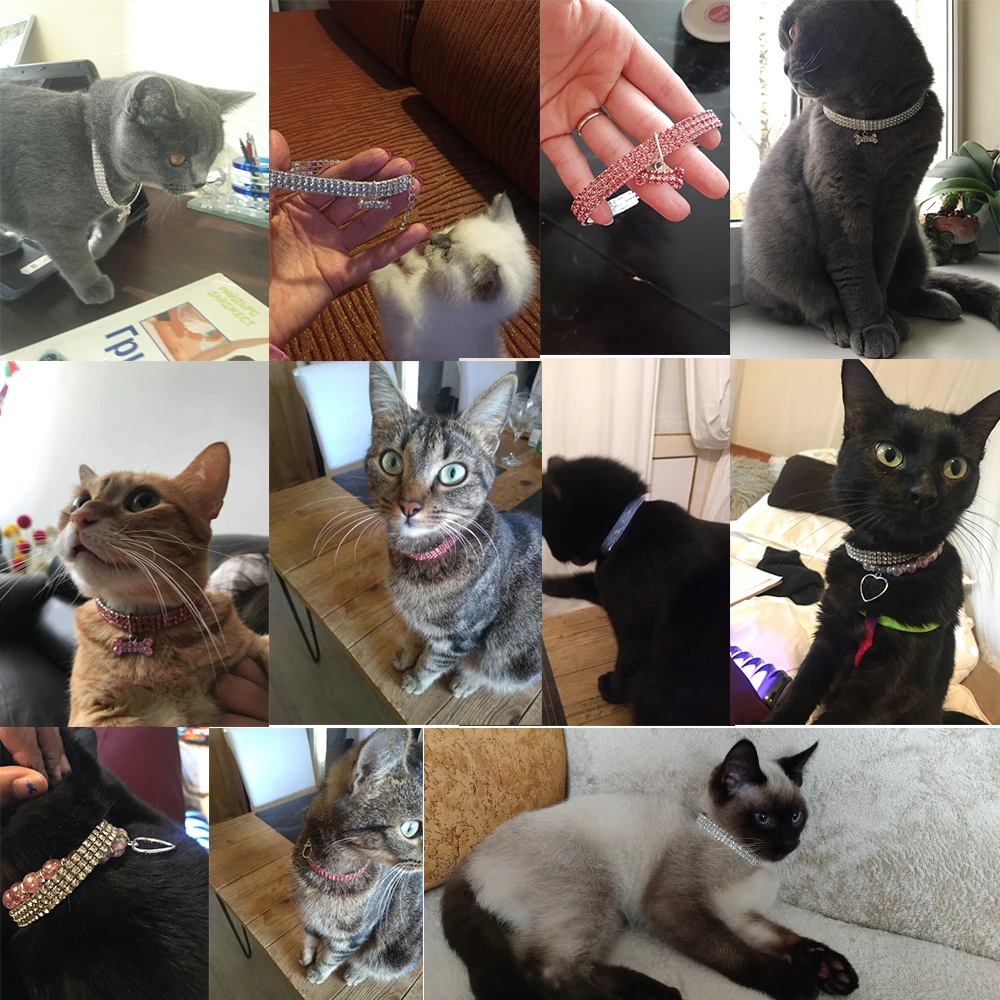 Ошейник для кошек, для маленьких щенков, для собак, эластичное регулируемое ожерелье из материала со стразами, аксессуары для собак