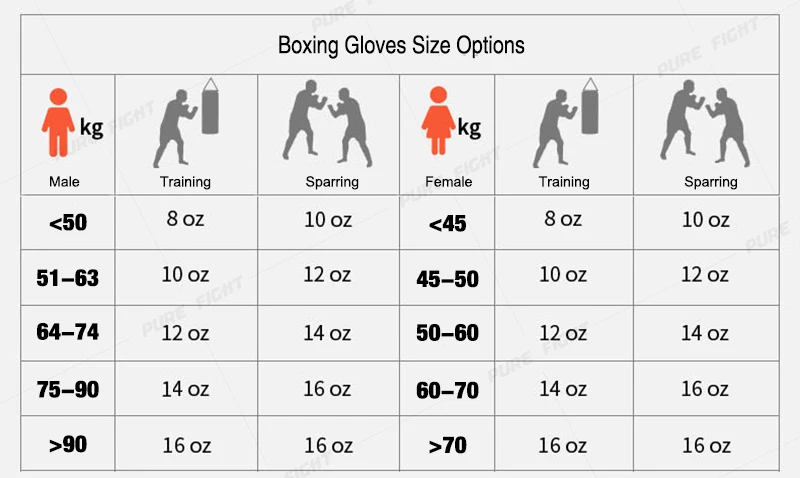 6 унций:От 6 до 11 лет детей(Ширина ладони 5-6,5 см и длина ладони между: 13-16 см)8 унций:Возраст 12-15 лет(Ширина ладони между: 6,5-7,5 см и длина ладони между: 15-18 см)10 унций:Взрослый мужчина или женщина(Ширина ладони между: 7,5-8,5 см и длина ладони между: 16-20 см)12 унций:Взрослый мужской(Ширина ладони> 8,5 см и длина ладони между: 19-22 см)