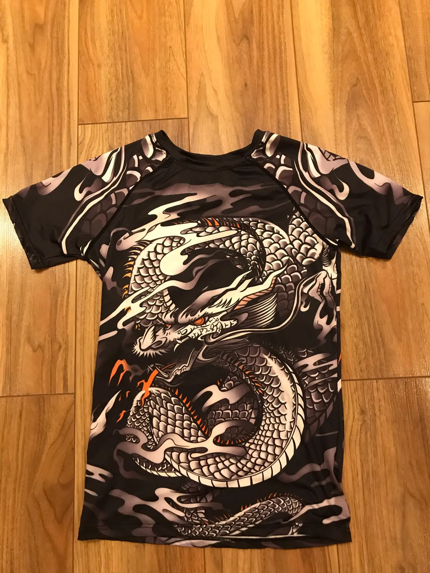 Футболка мужская с 3D принтом, компрессионная футболка для спортзала, летающий дракон, майка с коротким рукавом, Рашгард, MMA BJJ, 2020