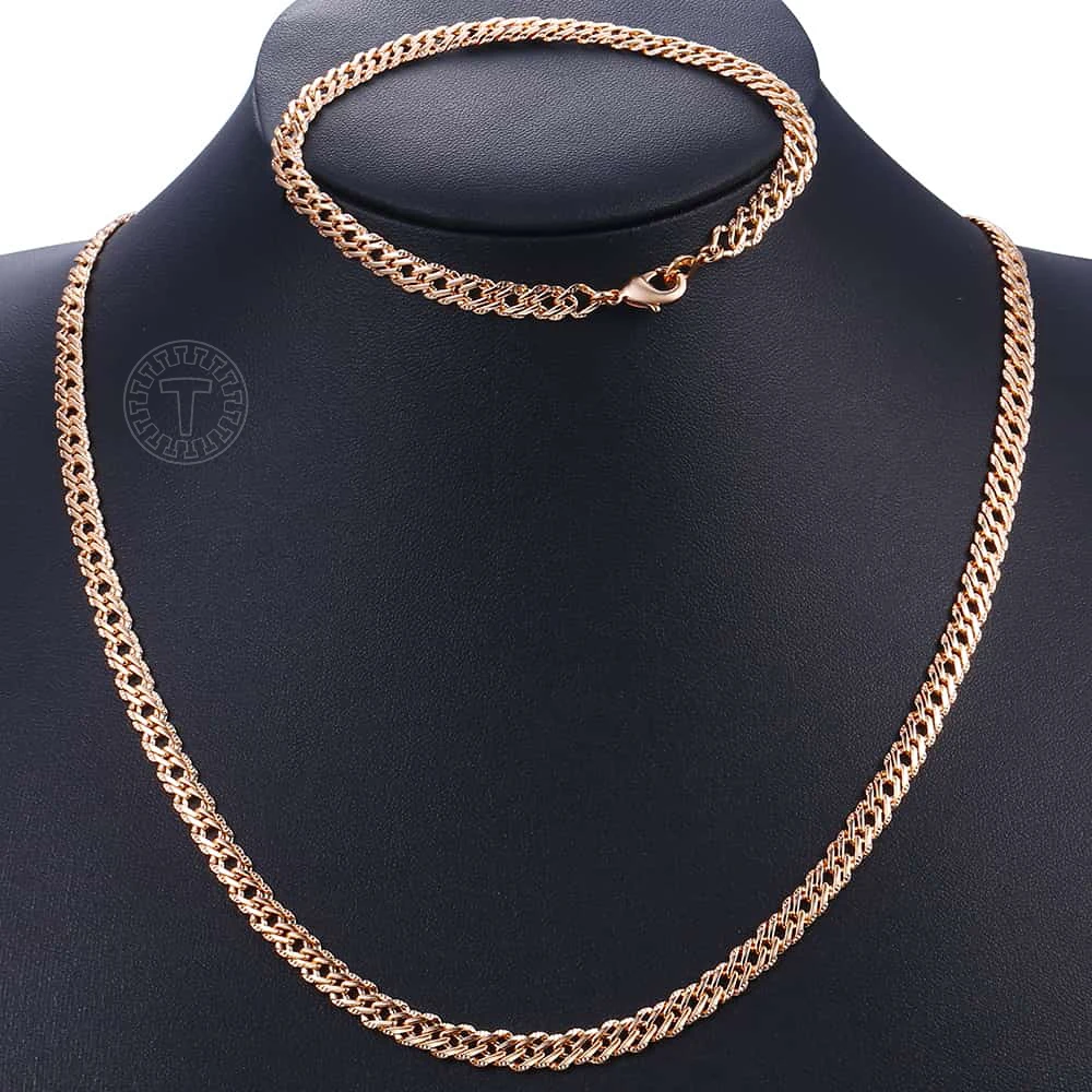 Цепочка и браслет, плетеная из розового золота набор украшений для ...