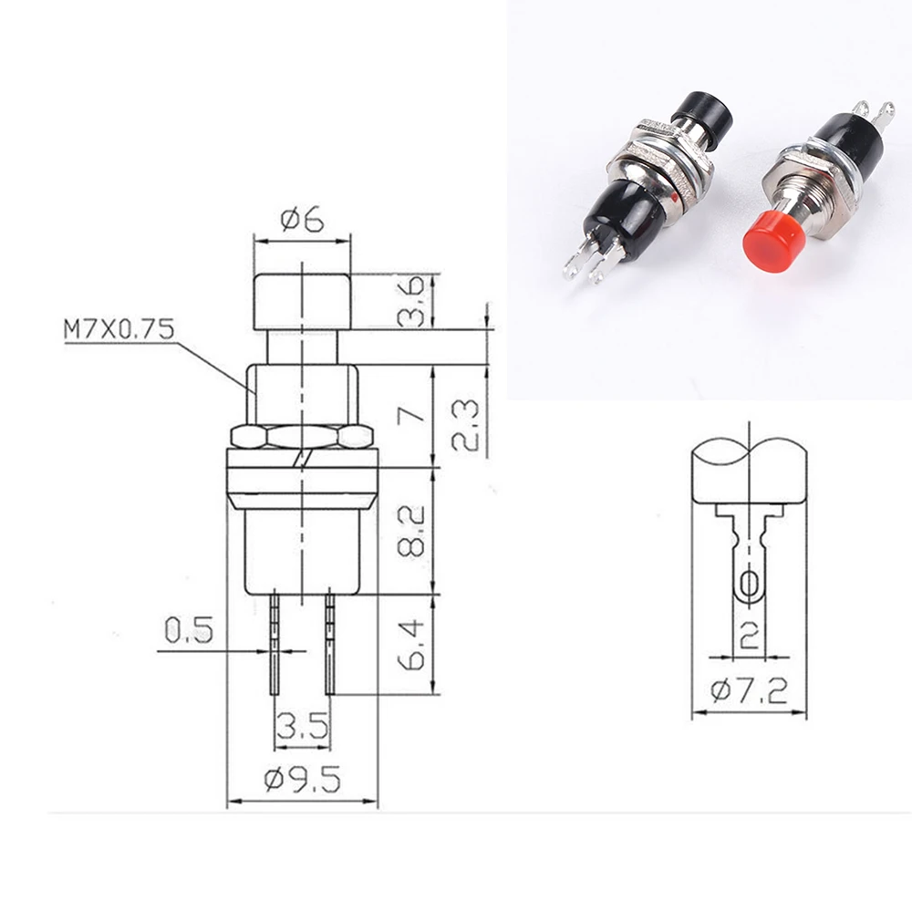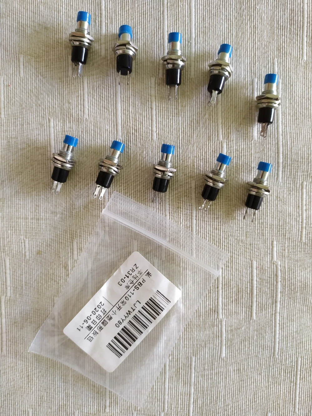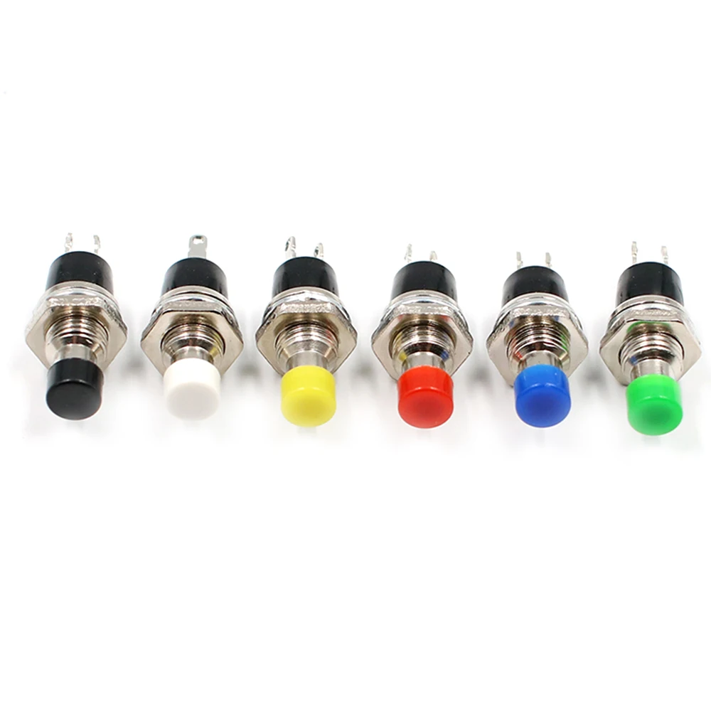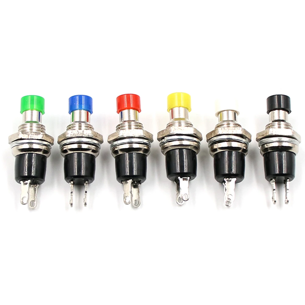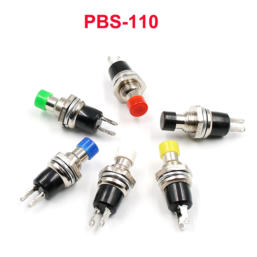 Кнопочный переключатель, многоцветный, с 2 контактами, 7 мм, красный, черный, белый, синий, желтый, зеленый, 10 шт., PBS-110