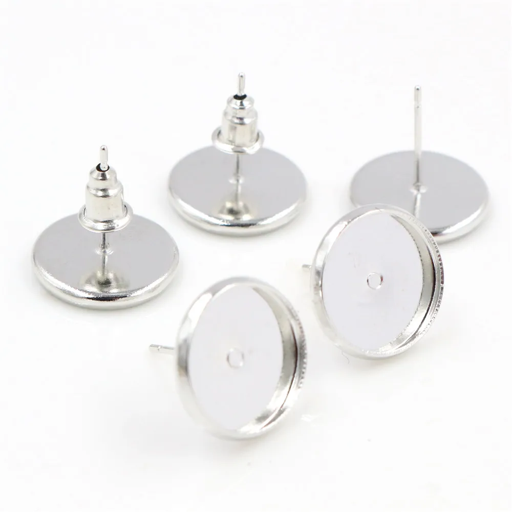 12 мм, 50 шт.лот, Классические Медные сережки с 7 видов цветов покрытием (с заглушкой), сережки, подходят для стеклянных кабошонов 12 мм