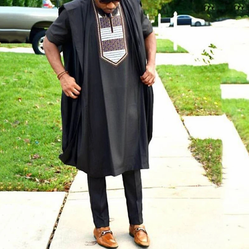 Комплект из 3 предметов для мужчин H D No Cap African Agbada Dress, рубашка в стиле Дашики, одежда в африканском стиле, мужские топы, штаны, костюмы, халаты