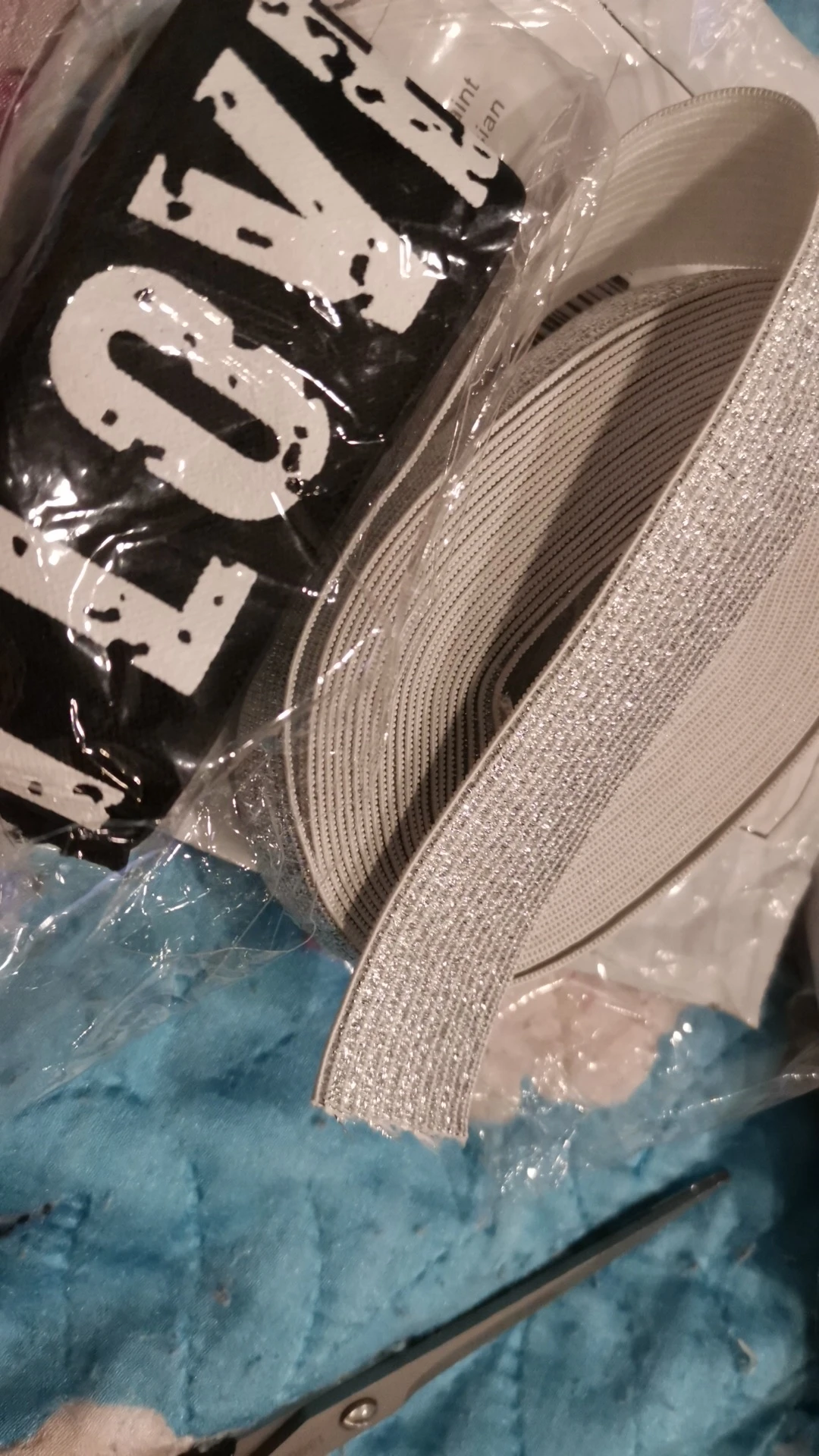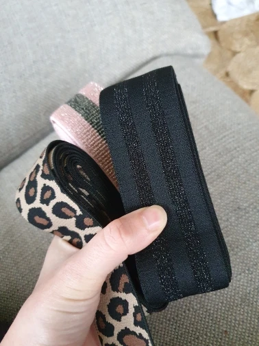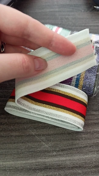 Хорошая эластичная лента. Так как буквы нанесены плотной краской поверх, лента тянется умеренно. Рисунок про этом не лопается и не портится.