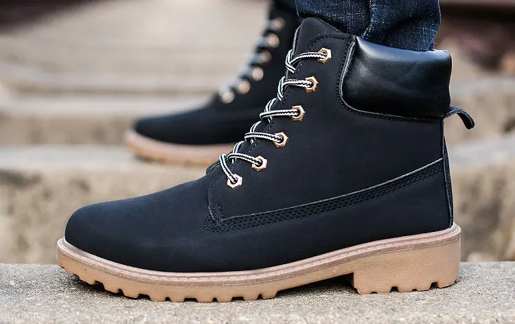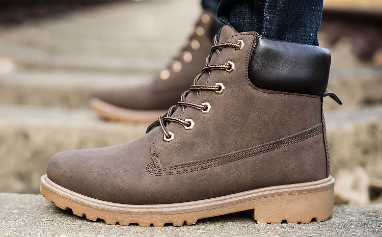 Мужские ботинки из искусственной кожи, зимние теплые ботинки на меху, Рабочая обувь на шнуровке, ботинки в Военном Стиле, размера плюс
