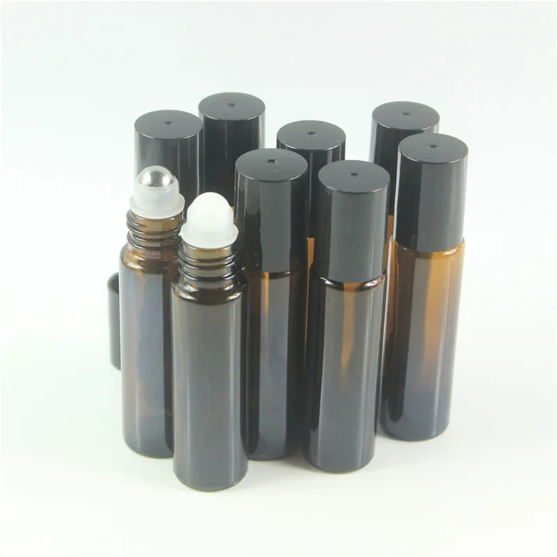 600 шт.лот 10 мл (13 унции) янтарные, прозрачные и синие толстые стеклянные бутылки для эфирных масел, пустые парфюмерные бутылки, роликовый шар, Бесплатная доставка DHL