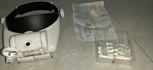Товар соответствует описанию. По ощущениям всё собрано весьма надёжно, ничего не болтается, не гремит. Конструкция удобная, на голове фиксируется крепко. Сменные линзы очень выручают в ювелирке. Батареек в комплекте нет, нужны три штуки АА.