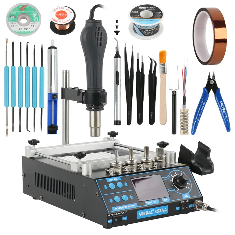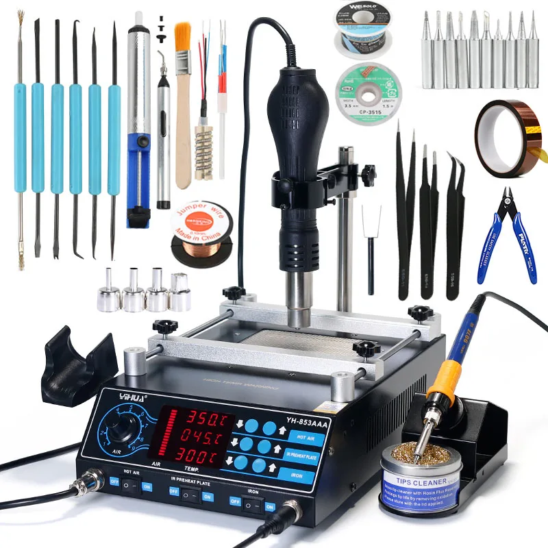 Паяльная станция YIHUA 853AAA853AA, регулируемый паяльник BGA, пистолет горячего воздуха, печатная плата, инфракрасная паяльная станция для сварки и распайки