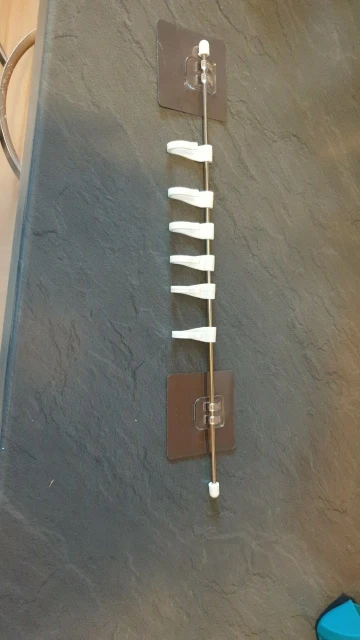Очень классная вещь! Клеится намертво. Хорошо держит предметы. Ось для крючков жесткая, не прогибается. Пластик, из которого крючки сделаны, тоже очень плотный, надёжный. Рекомендую к покупке! Очень качественно сделано.