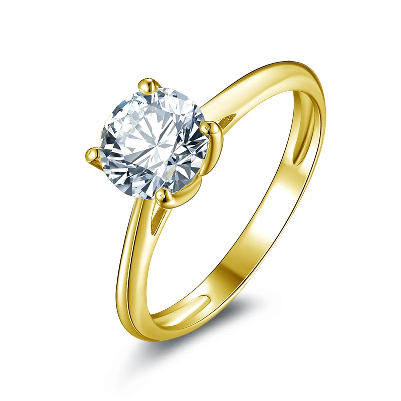 QYI изящное Ювелирное кольцо 14k, цельное желтое золото, обручальные кольца, подарок на день Святого Валентина, 1,25 карат, Круглые, Moissanite, бриллианты для женщин