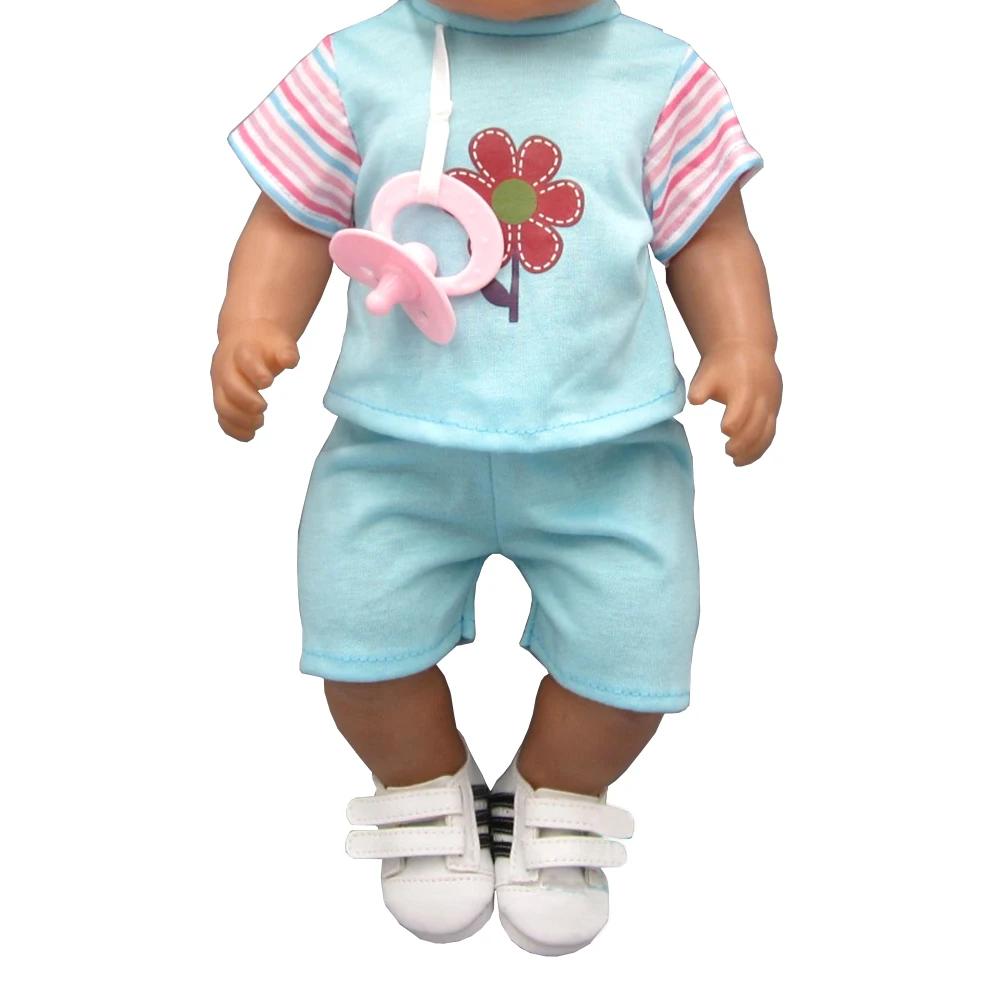 Одежда для малышей 43 см, аксессуары для кукол, небесно-голубая футболка, шорты с соской