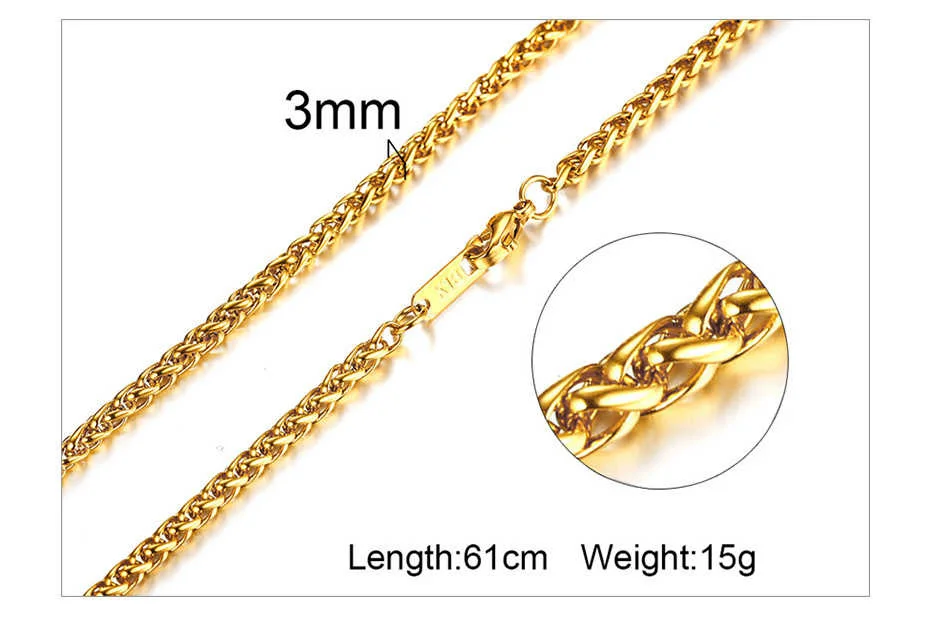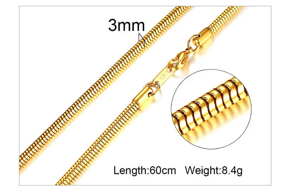 Мужское колье-чокер, 3-6 мм, из нержавеющей стали, 24 дюйма
