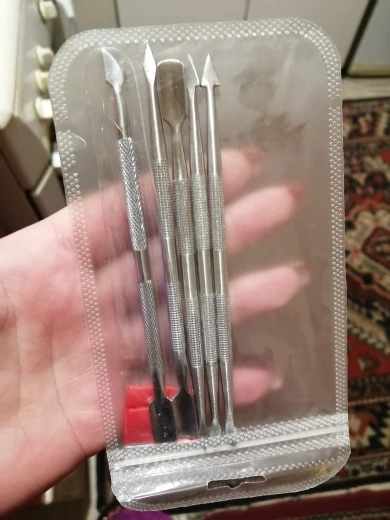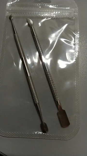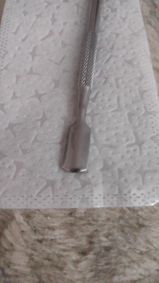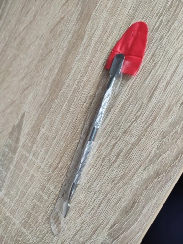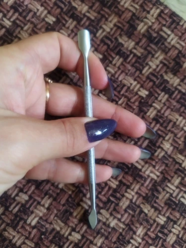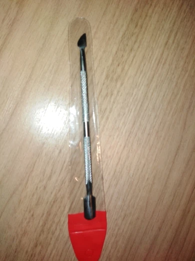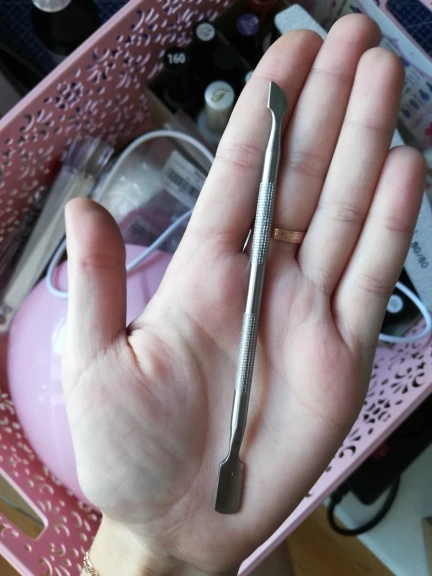 Мне не понравился этот пушер, у меня есть более удобные, этот валяется без дела. С острым концом который невозможно аккуратно воспользоваться, ногтевую пластину срезает, второй конец вообще не удобный.