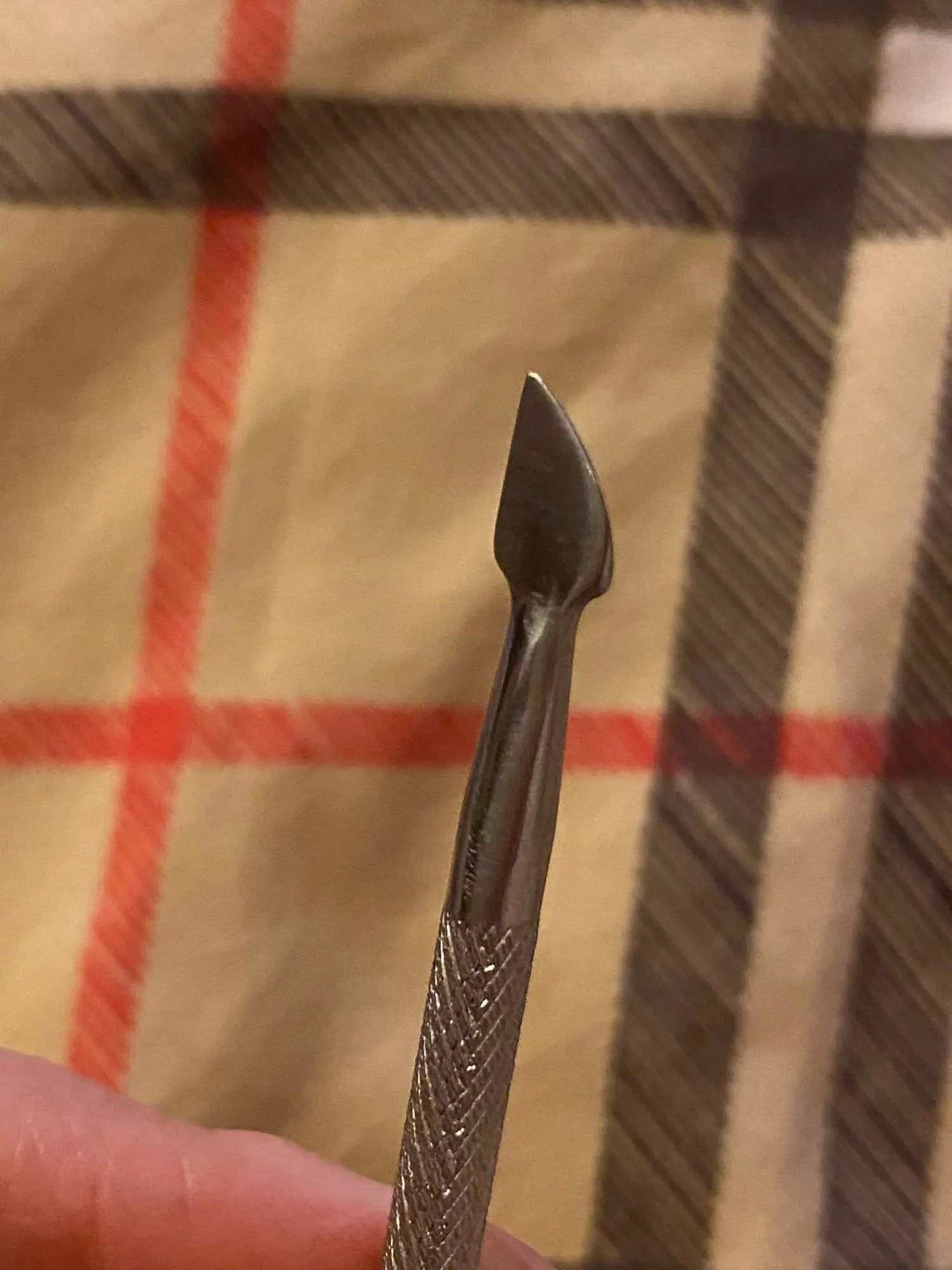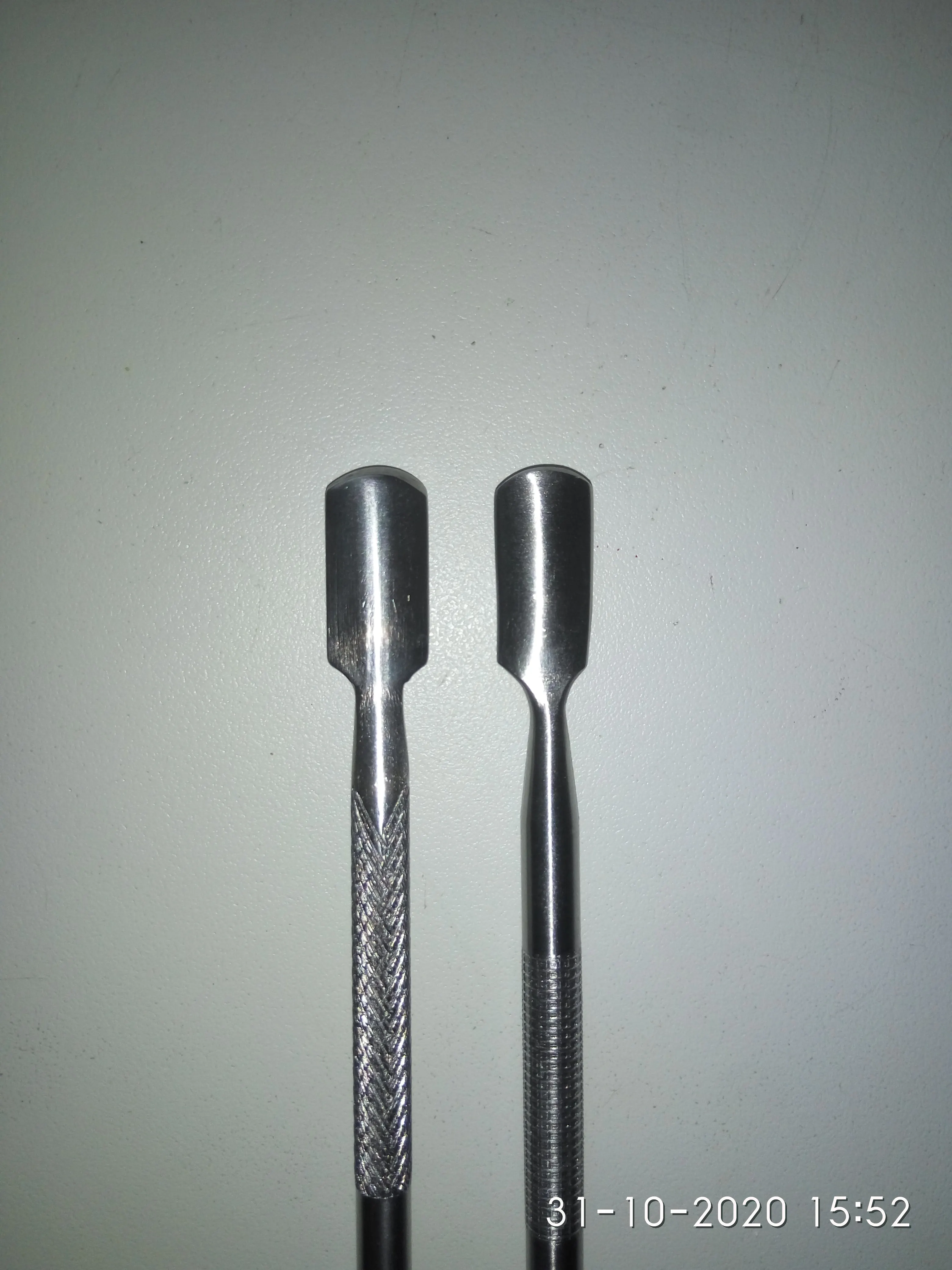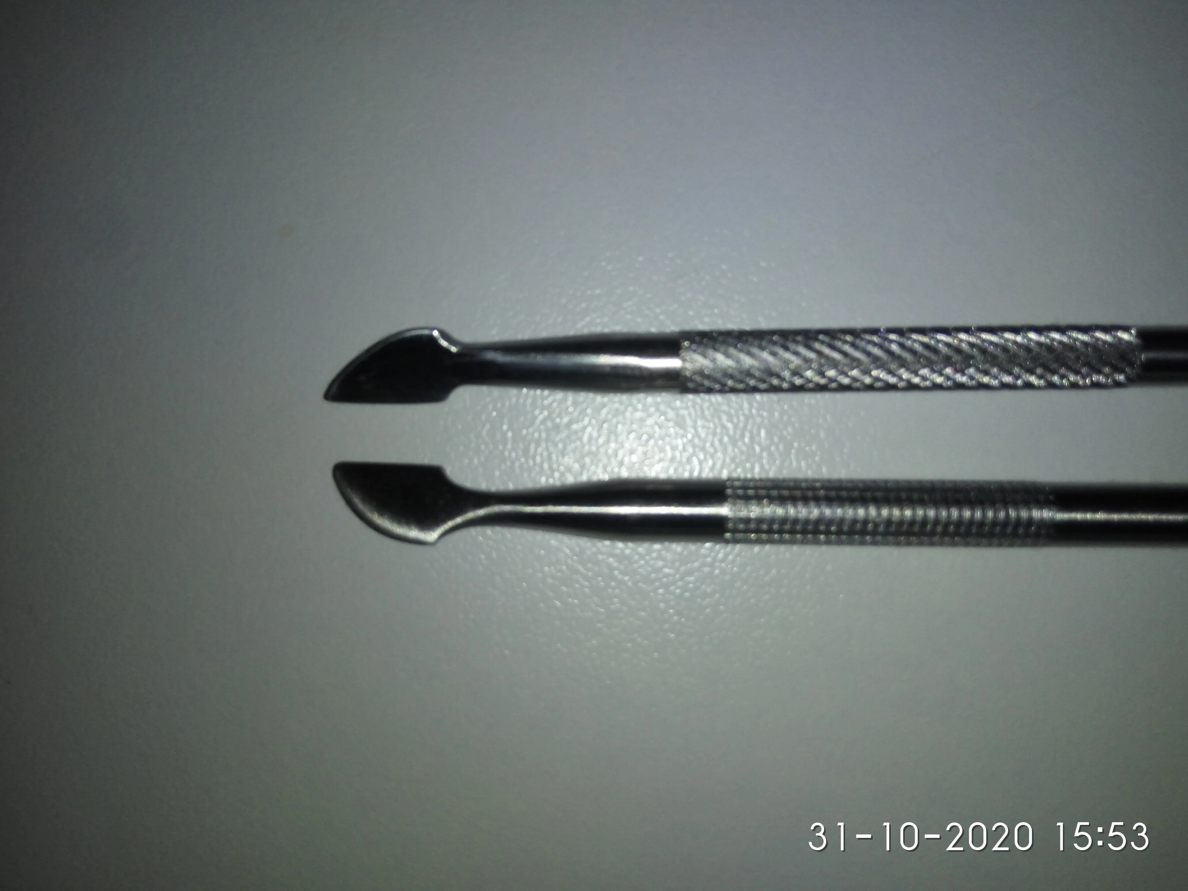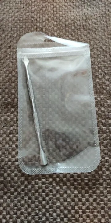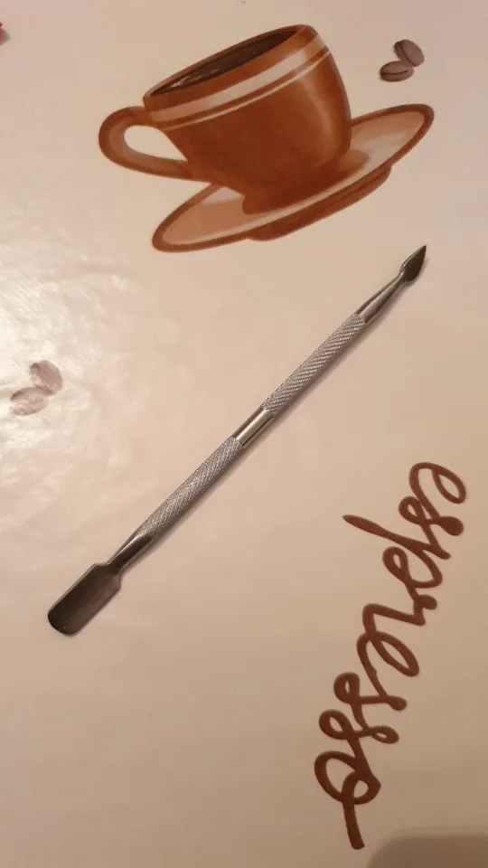 Нормальный пушер, не идеальный, но все же довольно удобный. Заточка средне острая. Металл не хирургическая сталь, темнее, но надеюсь, что нержавейка. Купила ради удобной формы наконечника, им хорошо счишать кутикулу с ногтя. Пришло за месяц с небольшим.