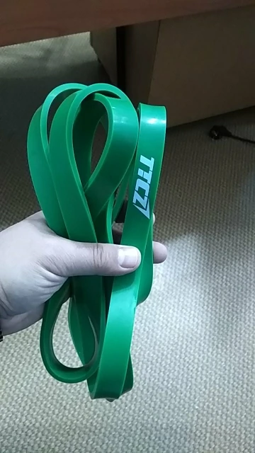 Доставка быстрая до ЮФО. Резинка жёсткая, не для разминки и новичков, больше на силу. В следующий раз поменьше буду брать сопротивление. Запаха химии нет. Вообщем брать можно.