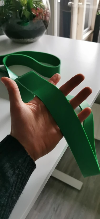 Заказали 3 разные ленты: красную, фиолетовую и зеленую, самую широкую. Сыну 10 лет (40 кг) и мужу (105 кг). Мужу зеленая нравится. Сыну больше подошла фиолетовая. Красная все же тонковата для него. Но это, когда есть с чем сравнить. А так и на этой неплохо занимался бы. Качество резинок очень достойное. Смело могу рекомендовать.