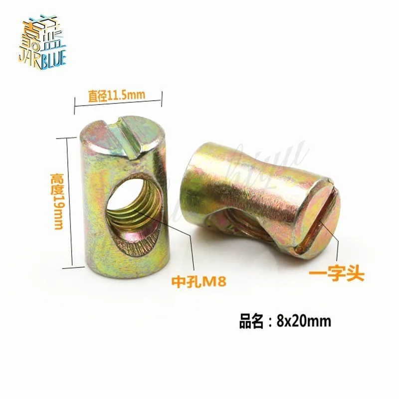 50 шт., болты для бочек M4 M5 M6 M8, крестообразные шлицевые фитинги для кроваток, стульев, гайка с горизонтальным отверстием, Вшитая гайка с молотком