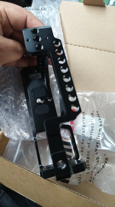 Очень хорошо сделанная клетка, весь алюминиевый сплав с множеством резьбовых отверстий 1/4 "и 3/8". Он прочный и хорошо продуманный. Единственная жалоба заключается в том, что он совместим с Sony A6000 и 6300, которые имеют несколько различные размеры. Означает, что A6000 немного тоньше, вы должны действительно положить его промыть и затянуть жесткий винт, чтобы предотвратить любую скручивание. Но в целом он обеспечивает большую защиту и обеспечивает безопасность. Рекомендуемый продукт, как и большинство мелких предметов, которые у меня есть.