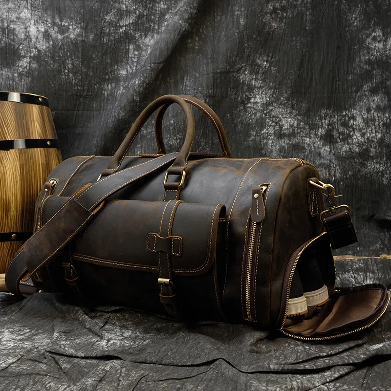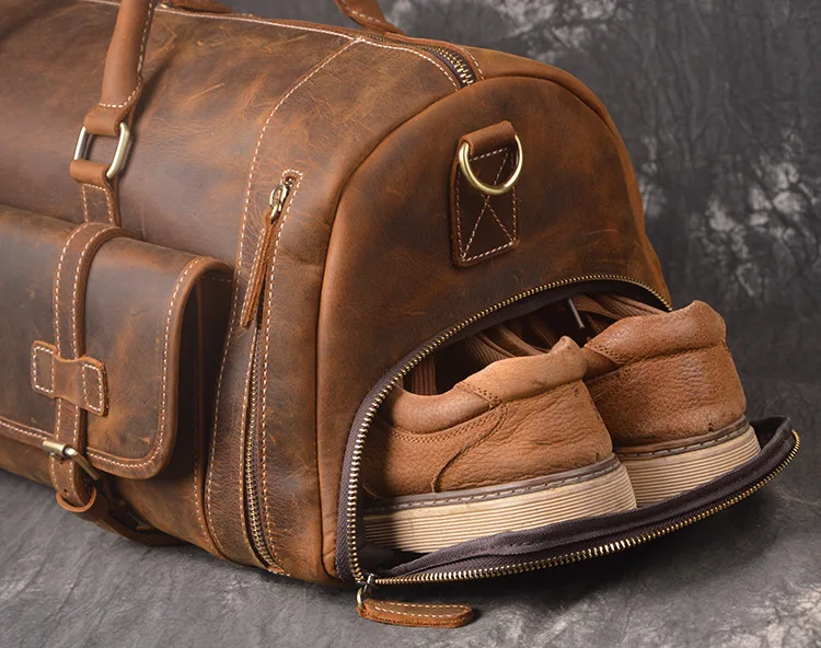 Мужская Дорожная сумка в винтажном стиле Crazy Horse, натуральная кожа, 18 дюймов, большая дорожная сумка из коровьей кожи, Бостонская деловая сумка для багажа на выходные
