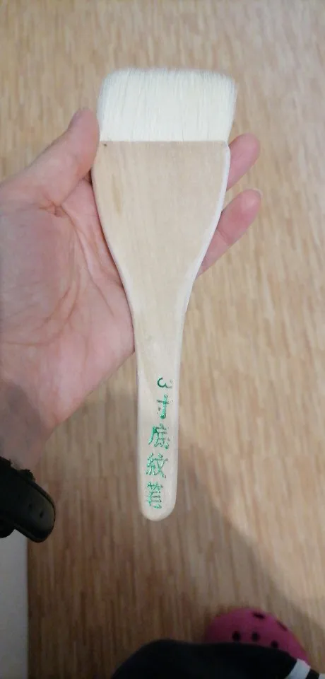 Замечательный мягкий флейц. Размер подходит для форматов не больше А3. Можно как смачивать, так и писать им.