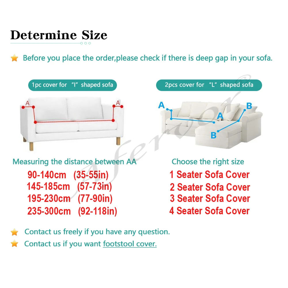 Размер Длина Вес 1 (одноместное) сиденье 90-140 см/35-55 дюймов 600 г 2 места 145-185 см/57-73 дюйма 800 г 3 места 195-230 см/77-90 дюймов 900 г 4 места 235-300 см/92-118 дюйма 1100 г Примечания: 1. В комплект входит только чехол для дивана, наволочки не входят.