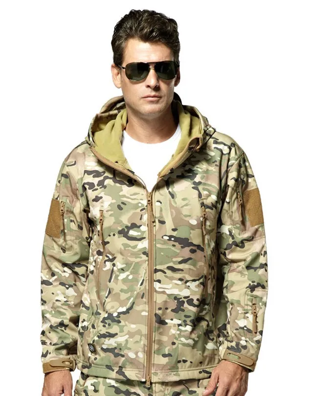 Мужская камуфляжная куртка на флисе, в стиле милитари