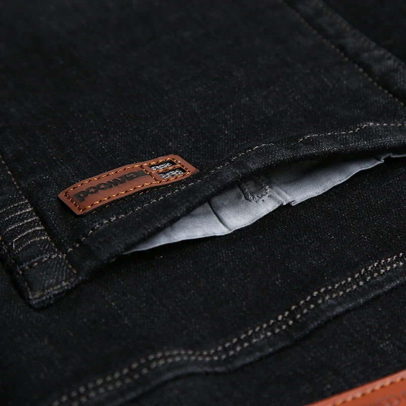 Зимние осенние тонкие толстые теплые флисовые мужские джинсы, деловые Стрейчевые Прямые хлопковые джинсы, повседневные черные джинсовые брюки