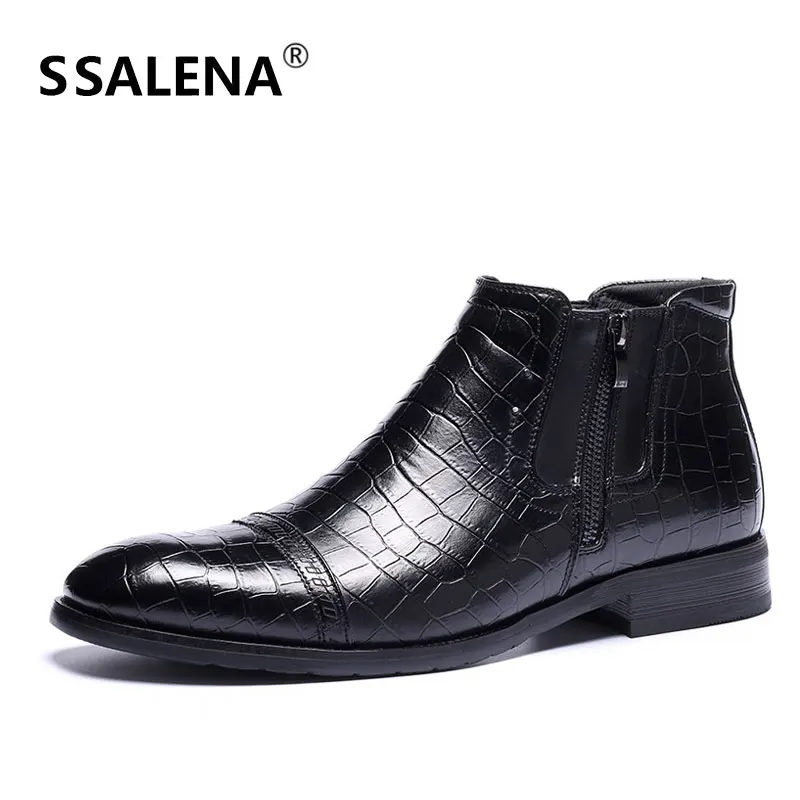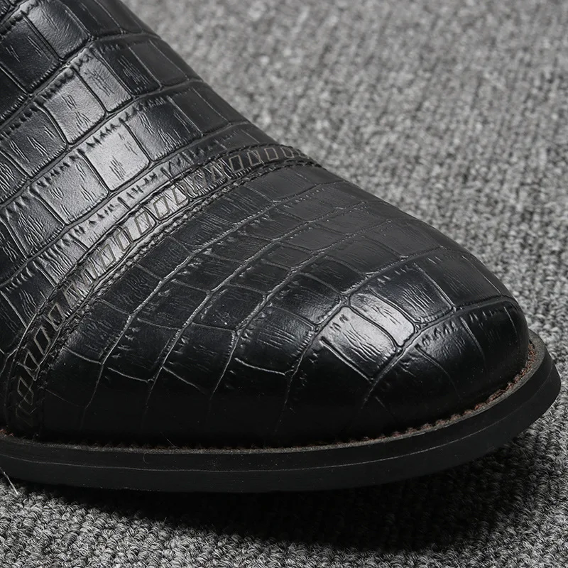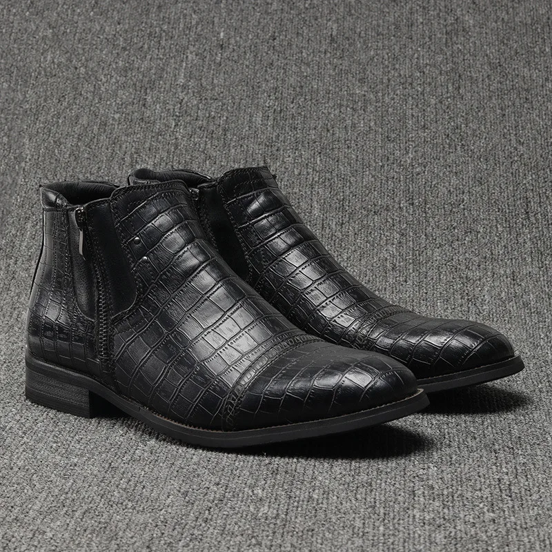 Зимние мужские ботинки на молнии с крокодиловым лицевым покрытием; Мужская Удобная Рабочая обувь; мужские ботинки с острым носком в байкерском стиле; ботильоны; AA51602