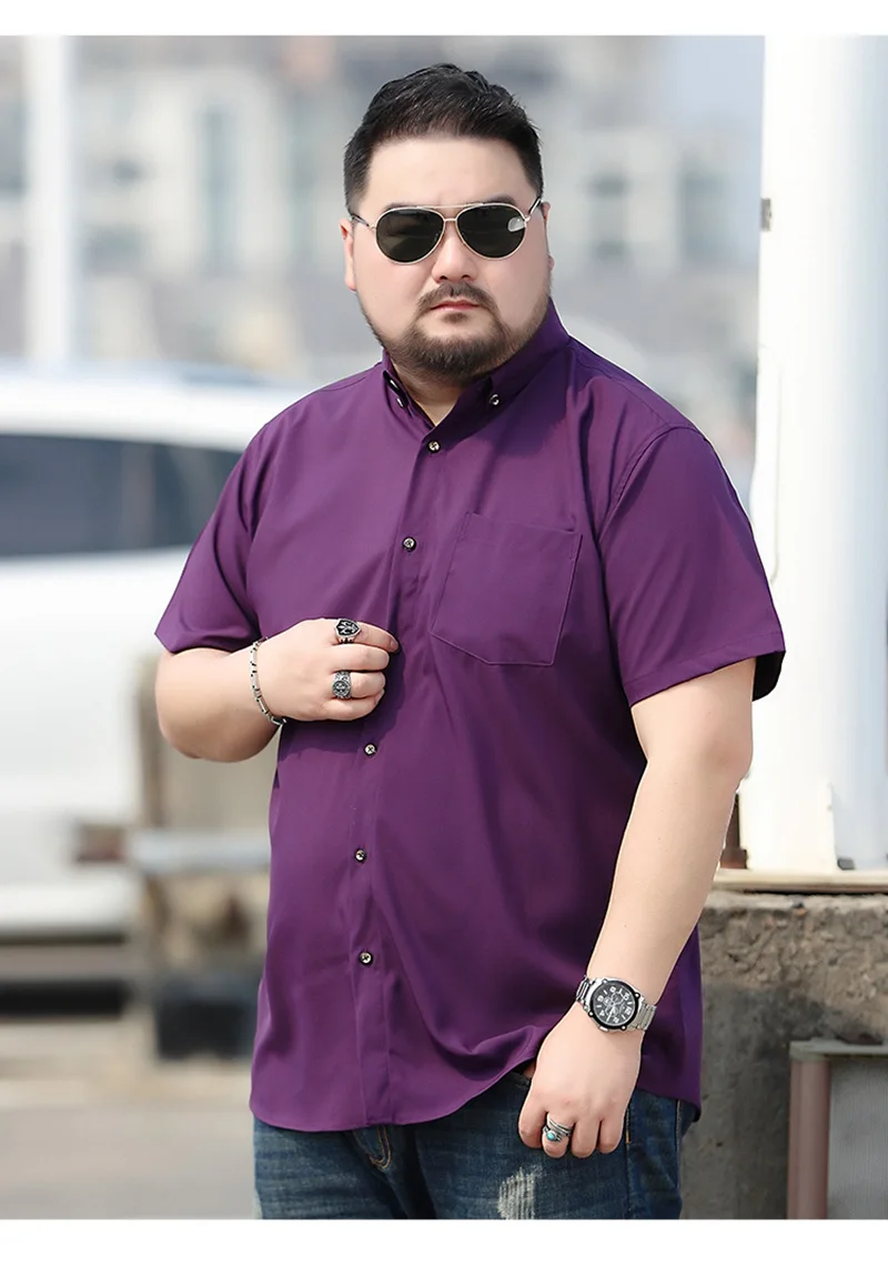 Рубашка мужская с коротким рукавом, повседневная классическая, розовая, темно-синяя, фиолетовая, для свадьбы, большие размеры 8XL 9XL 10XL 12XL 66
