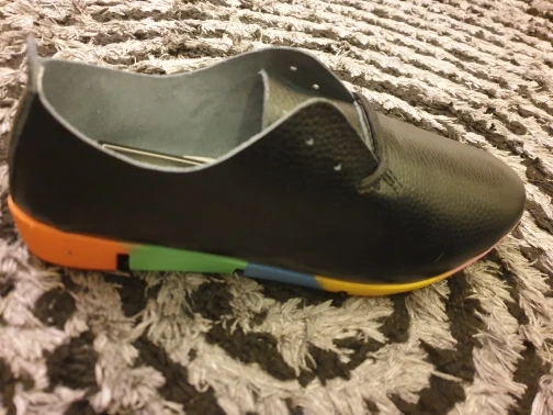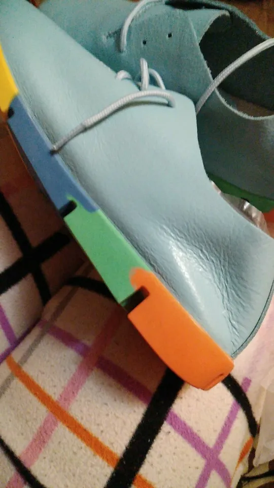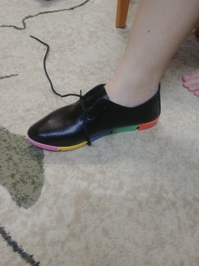 Хорошие,мягкие туфельки,снимать не хочется!Подошва сделана из разноцветных литых элементов,не крашеная,не облезет краска. Размер выбирала по сетке продавца-длина стопы оказалась 24.5 см,это вышло 39 р-р,хотя в жизни покупаю 38.и как ни странно размер подошел идеально! очень довольна покупкой!Быстрая доставка.