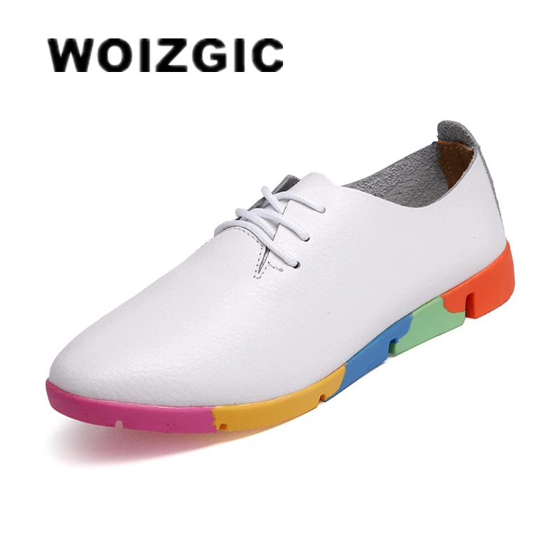 WOIZGIC, женские туфли для матерей, лоферы из коровьей натуральной кожи, мягкие повседневные туфли из свиной кожи на шнуровке, Размеры 35-44