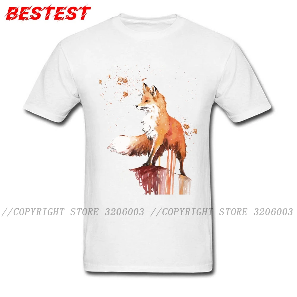 Осенняя Стильная мужская футболка, белая футболка с оранжевой лисой на скале, футболка с акварельным принтом, топы из 100% хлопка, одежда для взрослых, футболки XS