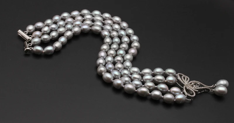 Женское Двухслойное ожерелье из серебра 925 пробы, с натуральным пресноводным жемчугом 8-9 мм