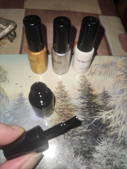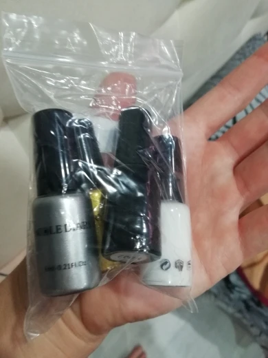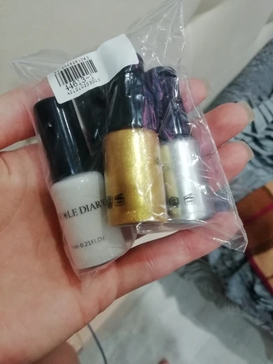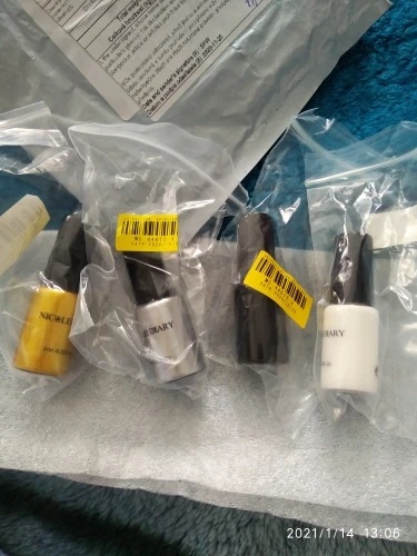 Заказ пришёл в течении месяца. Бутыльки идут по 6 мл и полные. Один чуть-чуть протек, но это не критично. Пигментация хорошая, запах как у обычного лака. Продавца рекомендую