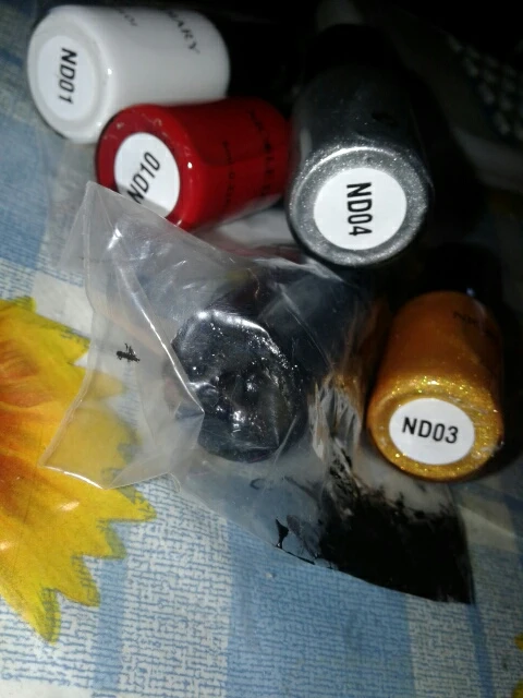 Все получила. Пузырьки не большие, но стеклянные, что радует). По виду и запаху обычный лак. (Можно узнать у профессионалов, чем лак для стемпенга отличается от обычного лака?). Только получила, еще не пробовала. Были упакованы очень хорошо. Каждый в индивидуальном пакетике и потом вместе плотно свернуты и обмотанны мягким пенопленом. На фото, я распоковала.