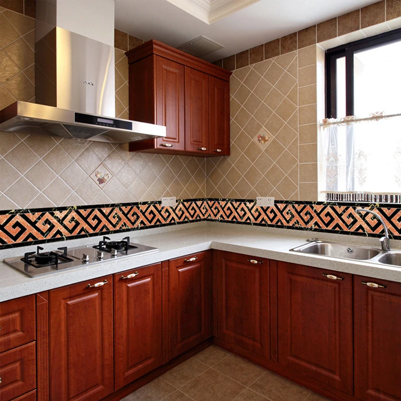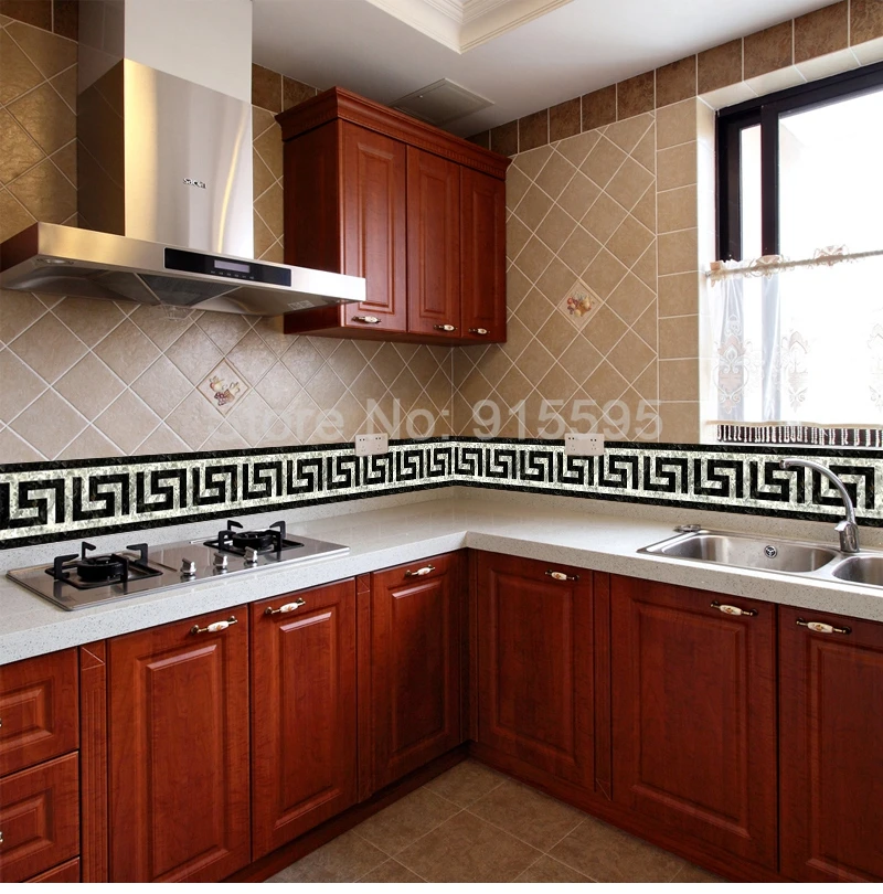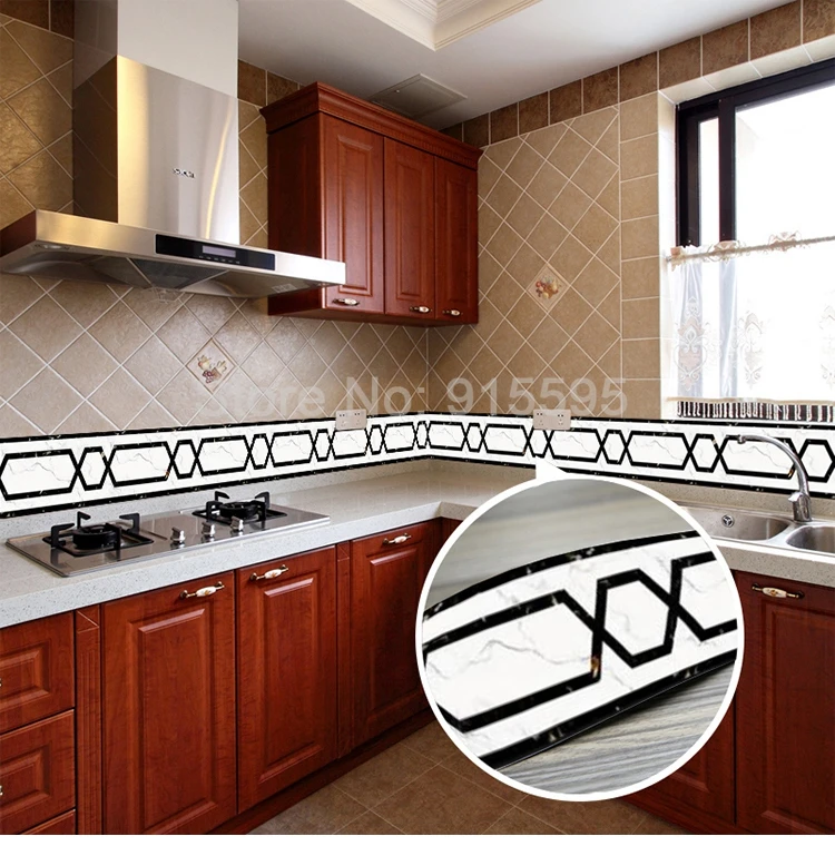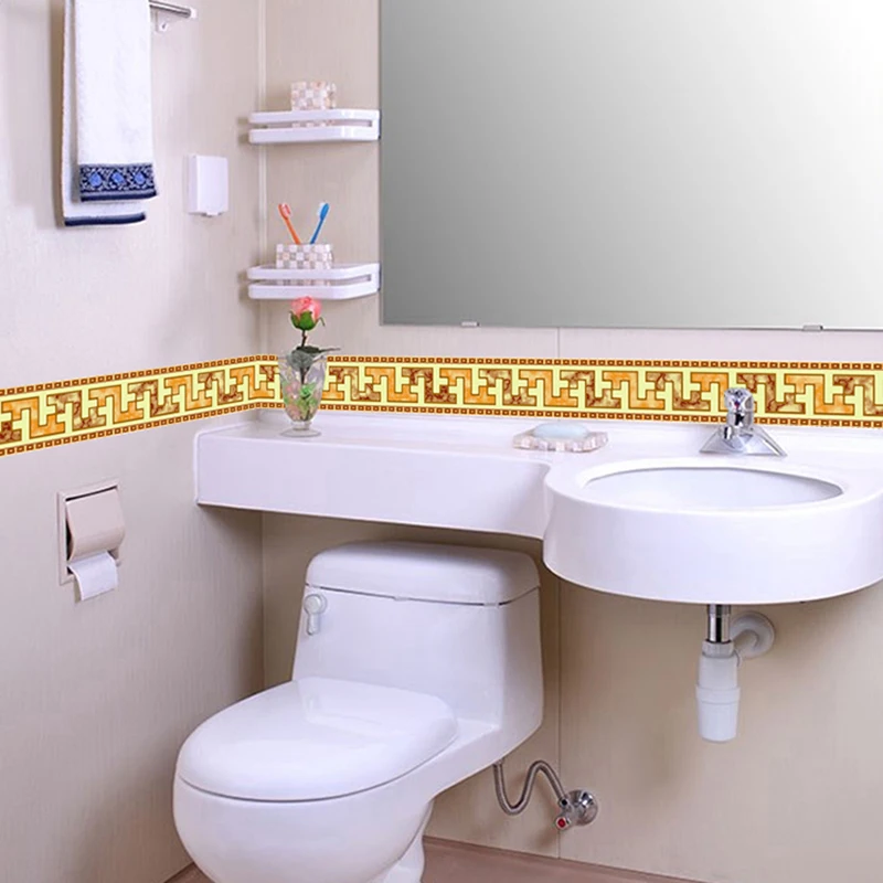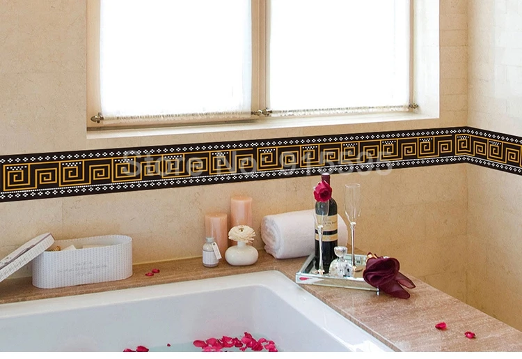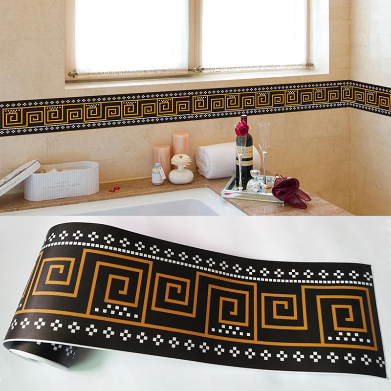 ПВХ Самоклеящиеся обои границ плинтус Стикеры Кухня Обеденная Гостиная линия талии Туалет Ванная комната стены домашний декор