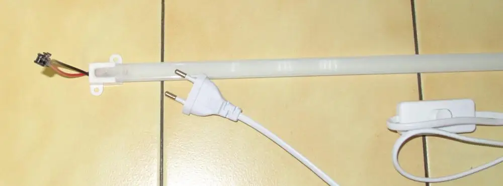при включении короткое замыкание в коннекторе провода питания, лампа не горит, надо перепаивать провод.доставка 11дней до выдачи в Пятëрочке в Москве.Опасные соединения коннекторы для 220в.Последний свободный коннектор с оголенными контактами лучше выпаять или изолировать.