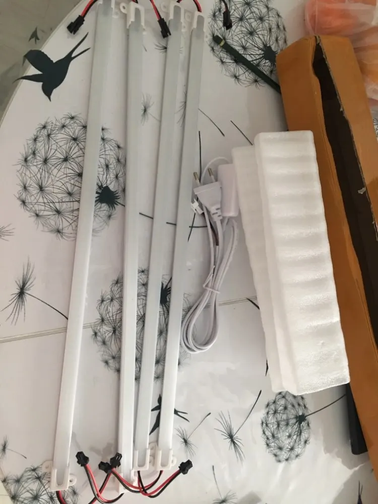 До Москвы доставка 14 дней. Трек появился только когда товар пришел на таможню, но это некритично при такой скорости доставки. Упакован в картонную коробку с пупырчатой пленкой. Небольшая помятость коробки явно от транспортных компаний не сказалась на качестве товара - все целое и в рабочем состоянии. Свет равномерный, однородный. Планки сделаны добротно.