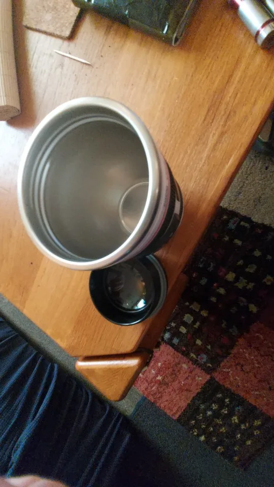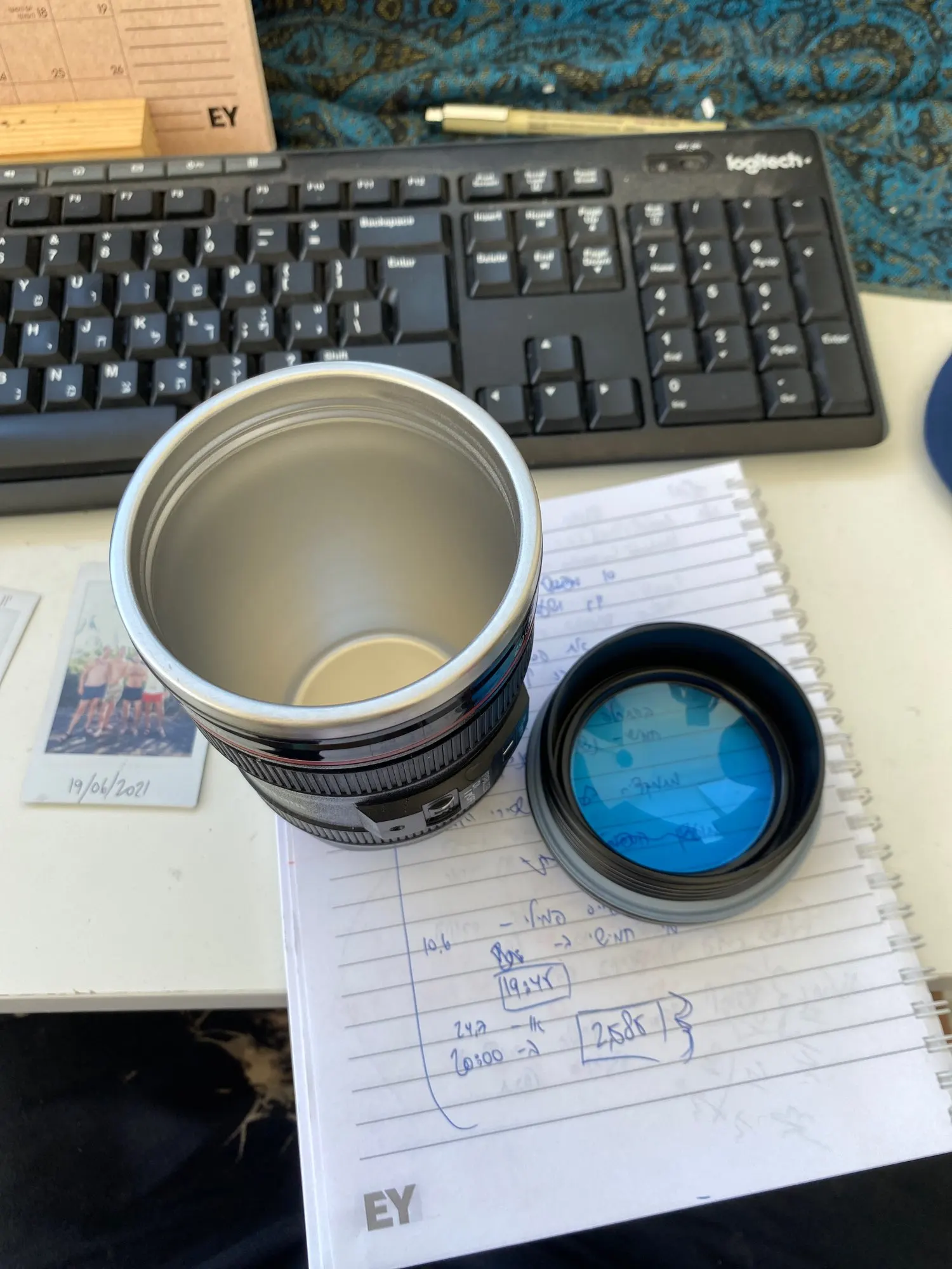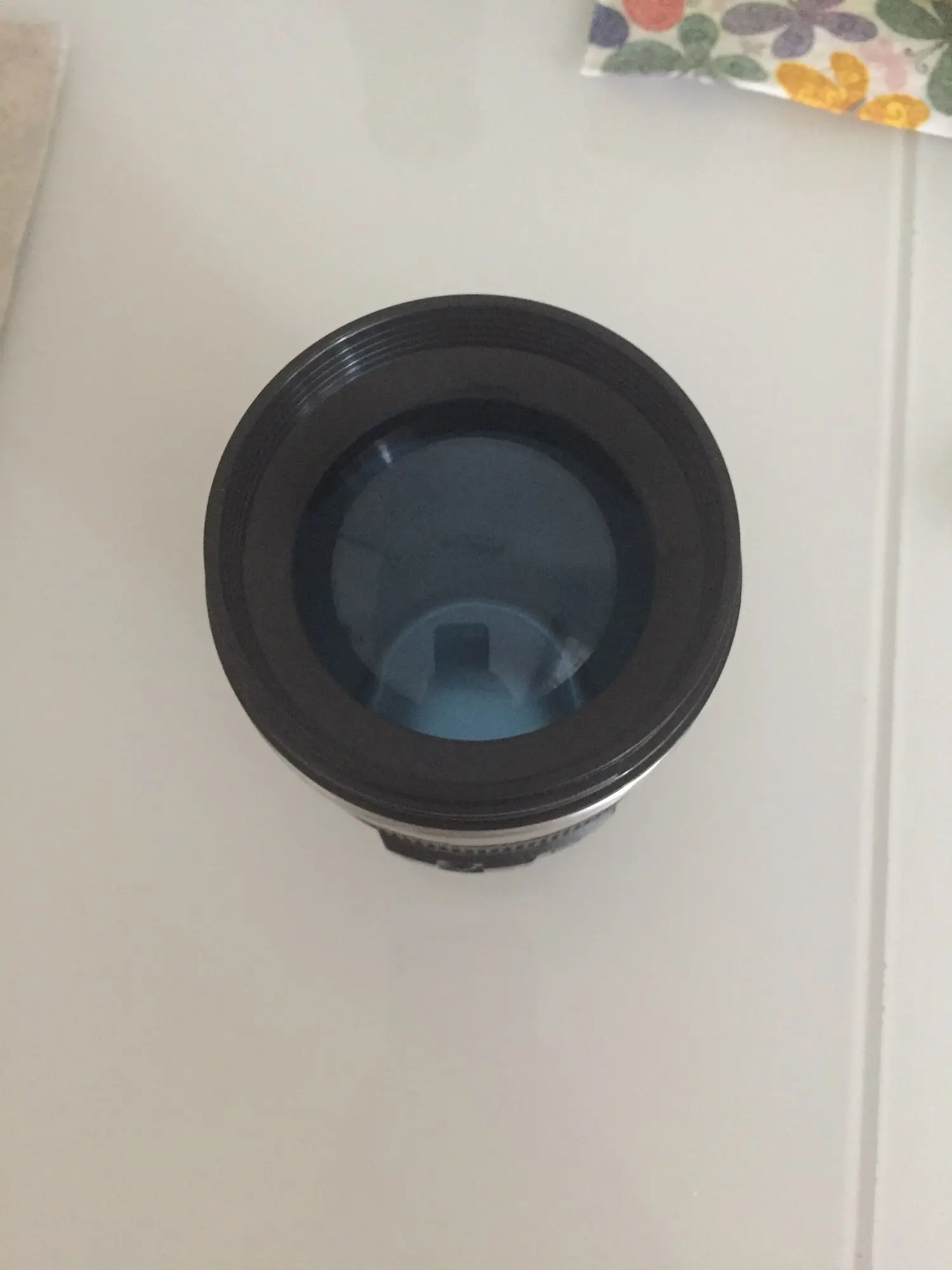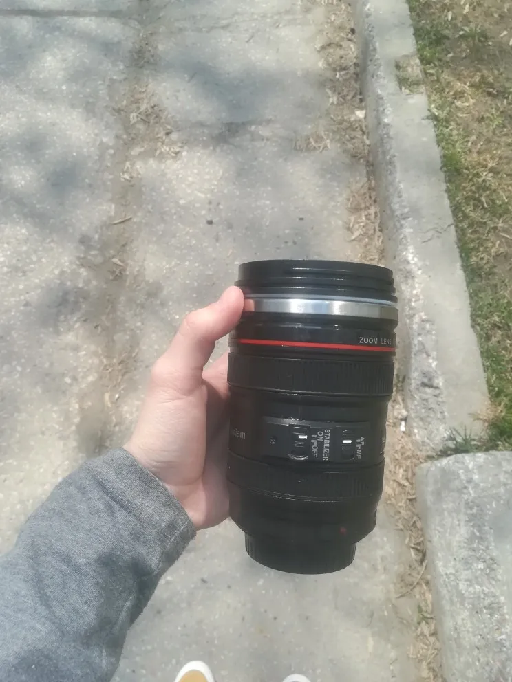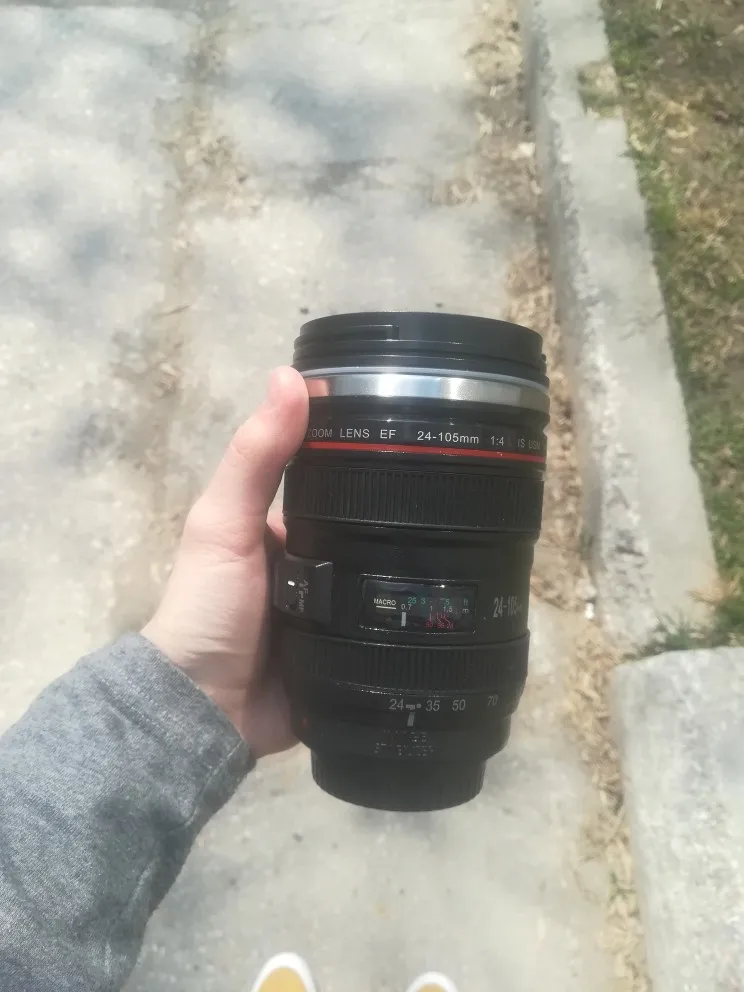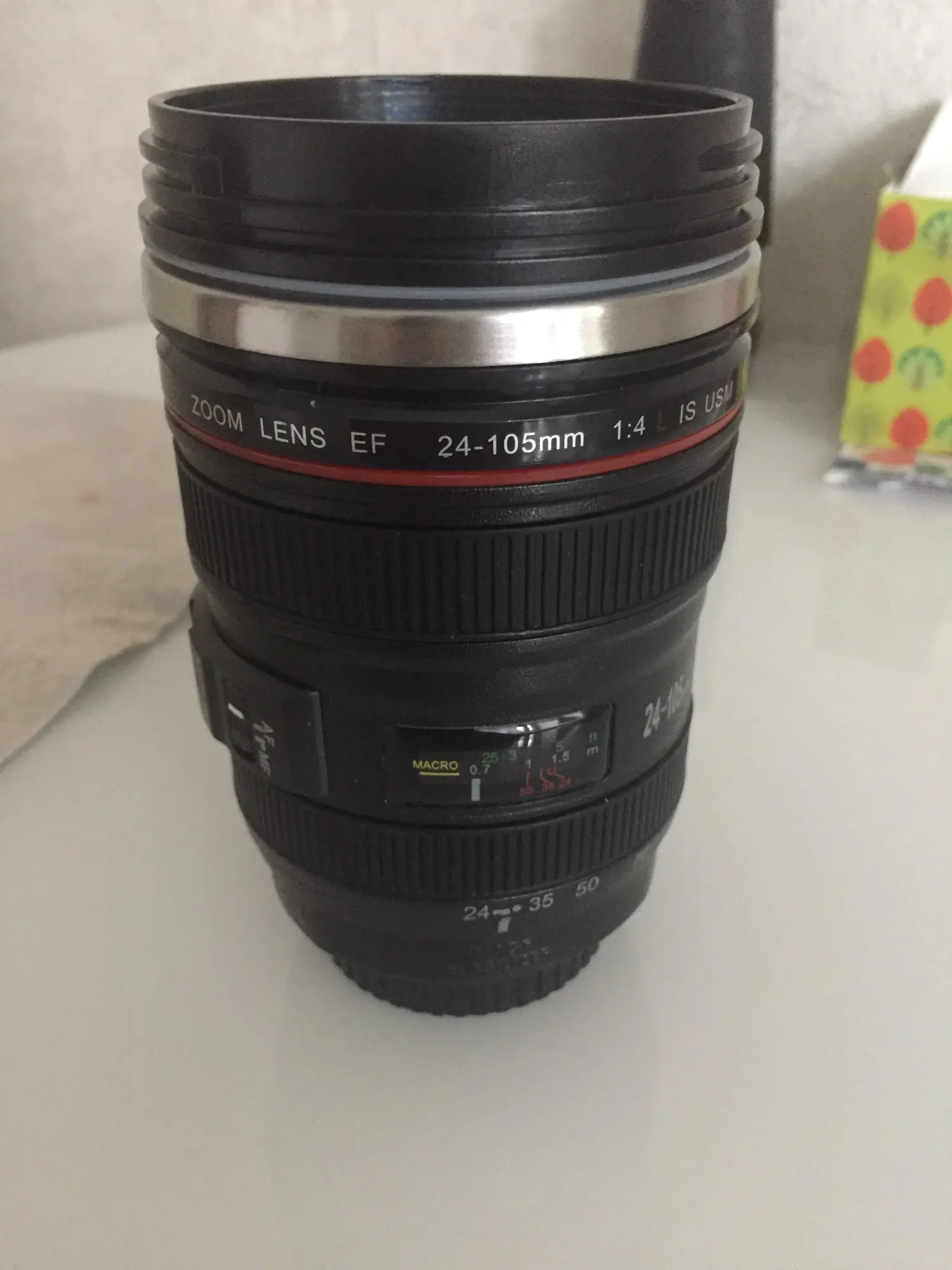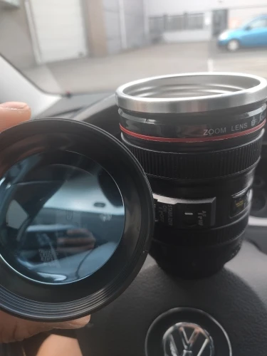 Внешне выглядит как объектив на 100%! Очень круто смотрится! Внутри - емкость на 400мл, двойные стенки из нержавеющей стали.