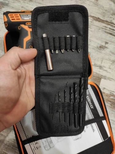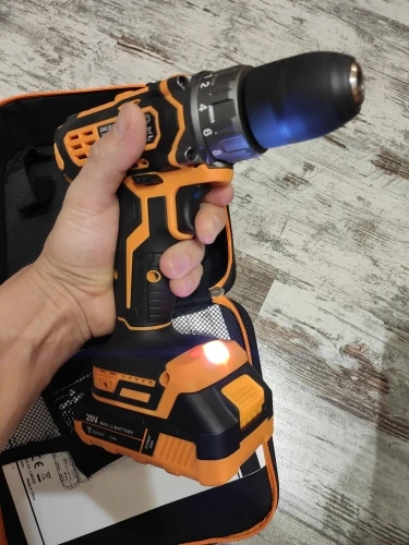 Доставка в Н.Новгород со склада Москвы 4 дня. Соответствует описанию. Двускоростной, 18-ти моментный регулятор усилия затяжки. Отдельно положение под сверление. Реверс, небольшая подсветка. Нет лямки на запястье. Батарея заряжена. Сразу проверил работоспособность, посверлил кусок ДСП. Сверла дрянь,переплачивать за них не нужно. Быты обычные. Покрутил несколько саморезов. Срабатывает механизм ограничения усилия. Никаким серьезным нагрузкам пока не подвергал. Пока ничего особенного. Будут изменения дополню отзыв. Продавца рекомендую.