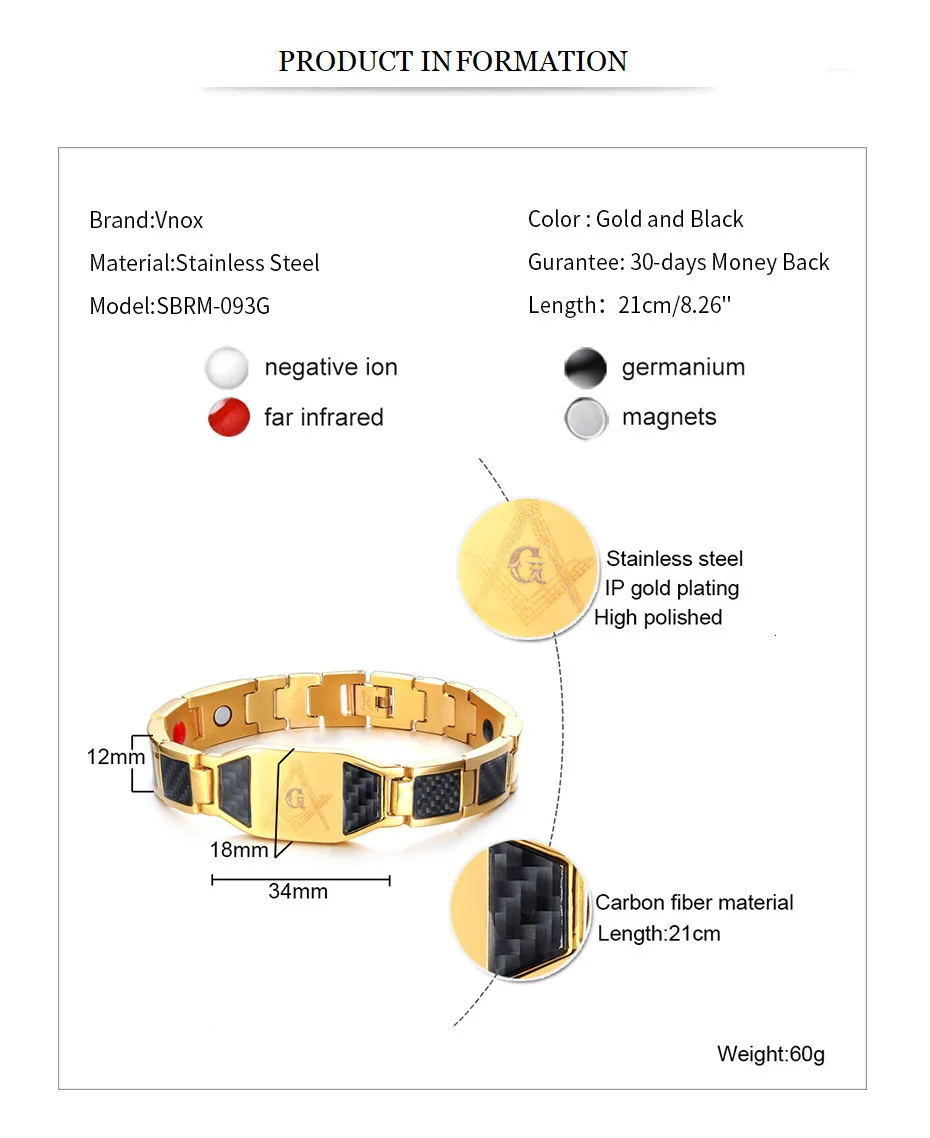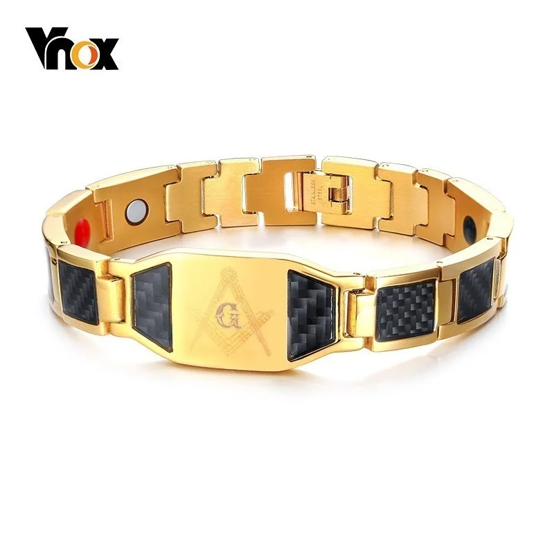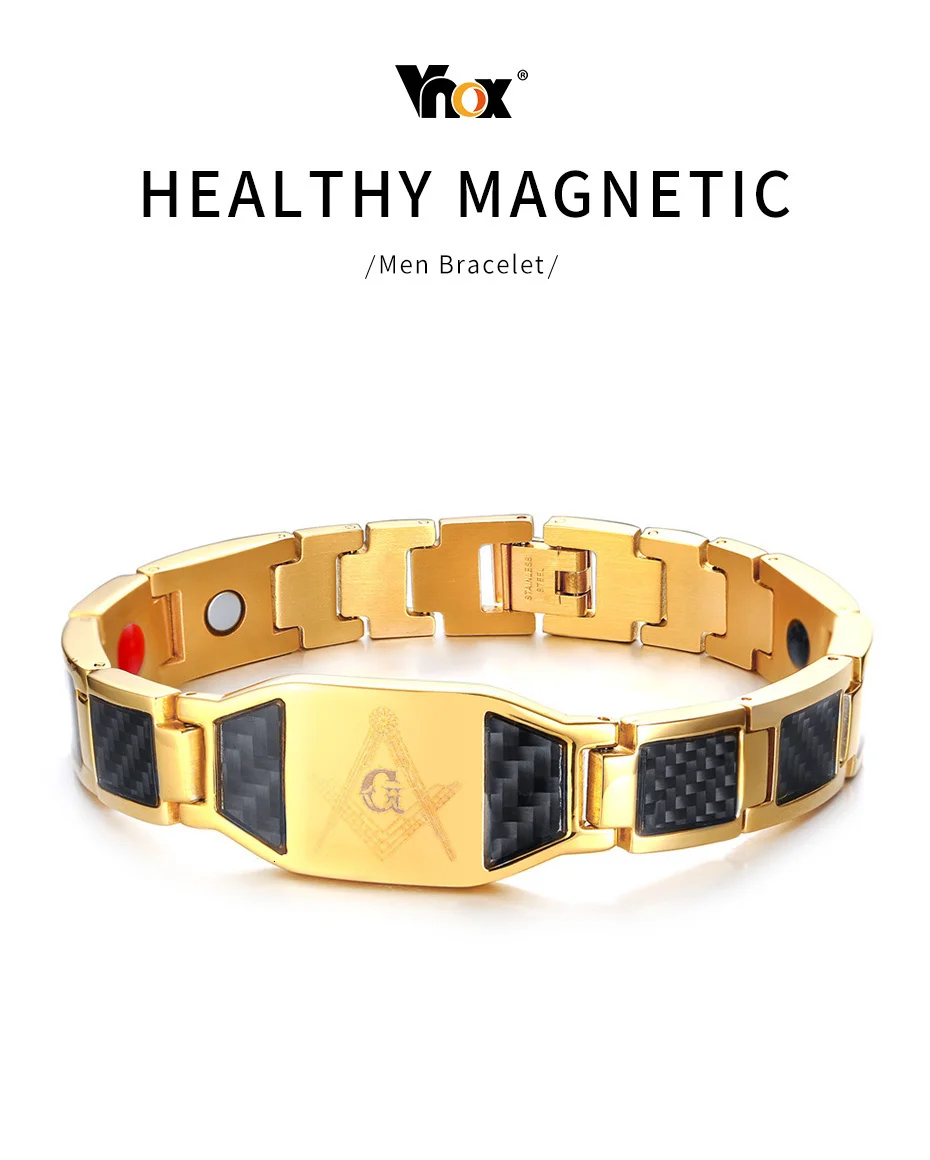 Браслет Vnox из нержавеющей стали для мужчин, лечебный браслет с би...